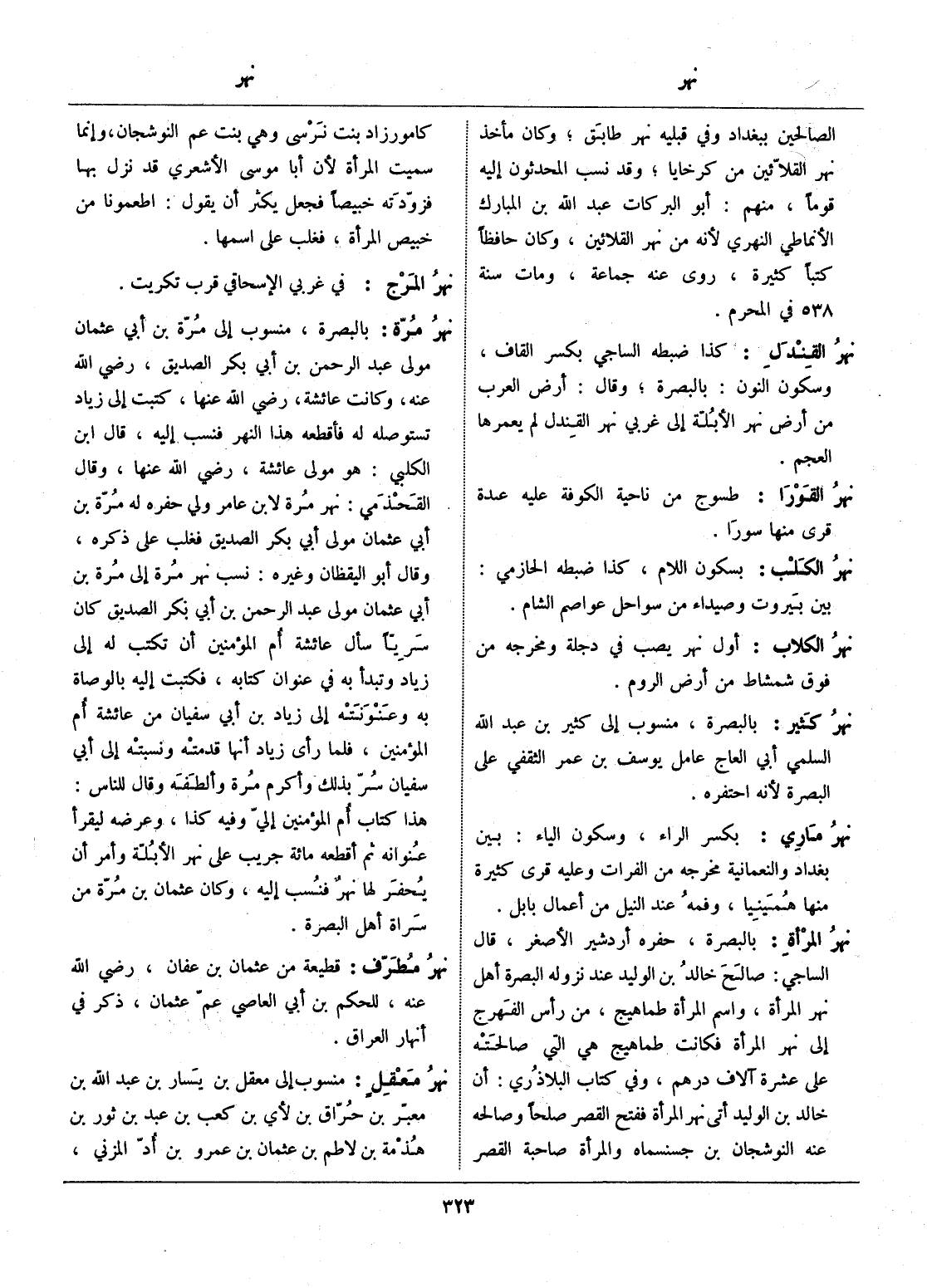 هذا كتاب أم المؤمنين إليّ وفيه كذا، وعرضه ليقرأ عنوانه ثم أقطعه مائة جريب على نهر الأبلّة وأمر أن يحفر لها نهر فنسب إليه، وكان عثمان بن مرّة من سراة أهل البصرة.