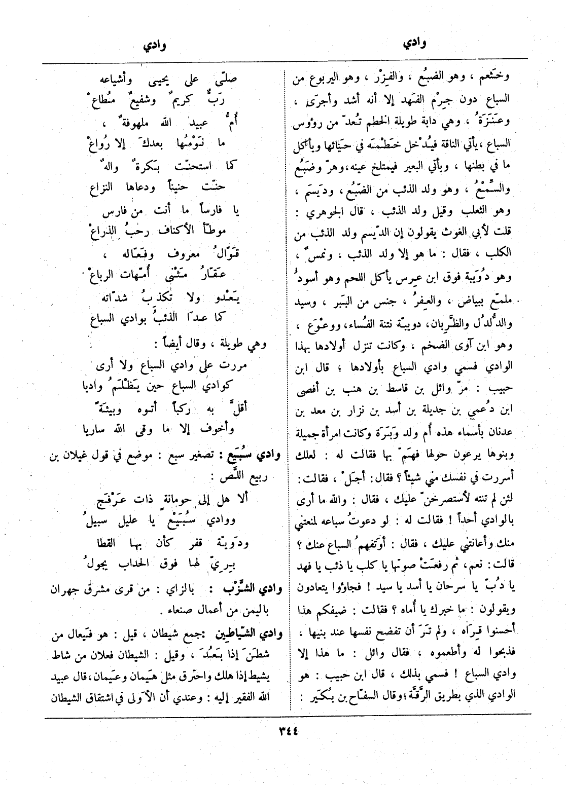 مررت على وادي السباع ولا أرى ... كوادي السباع حين يظلم واديا