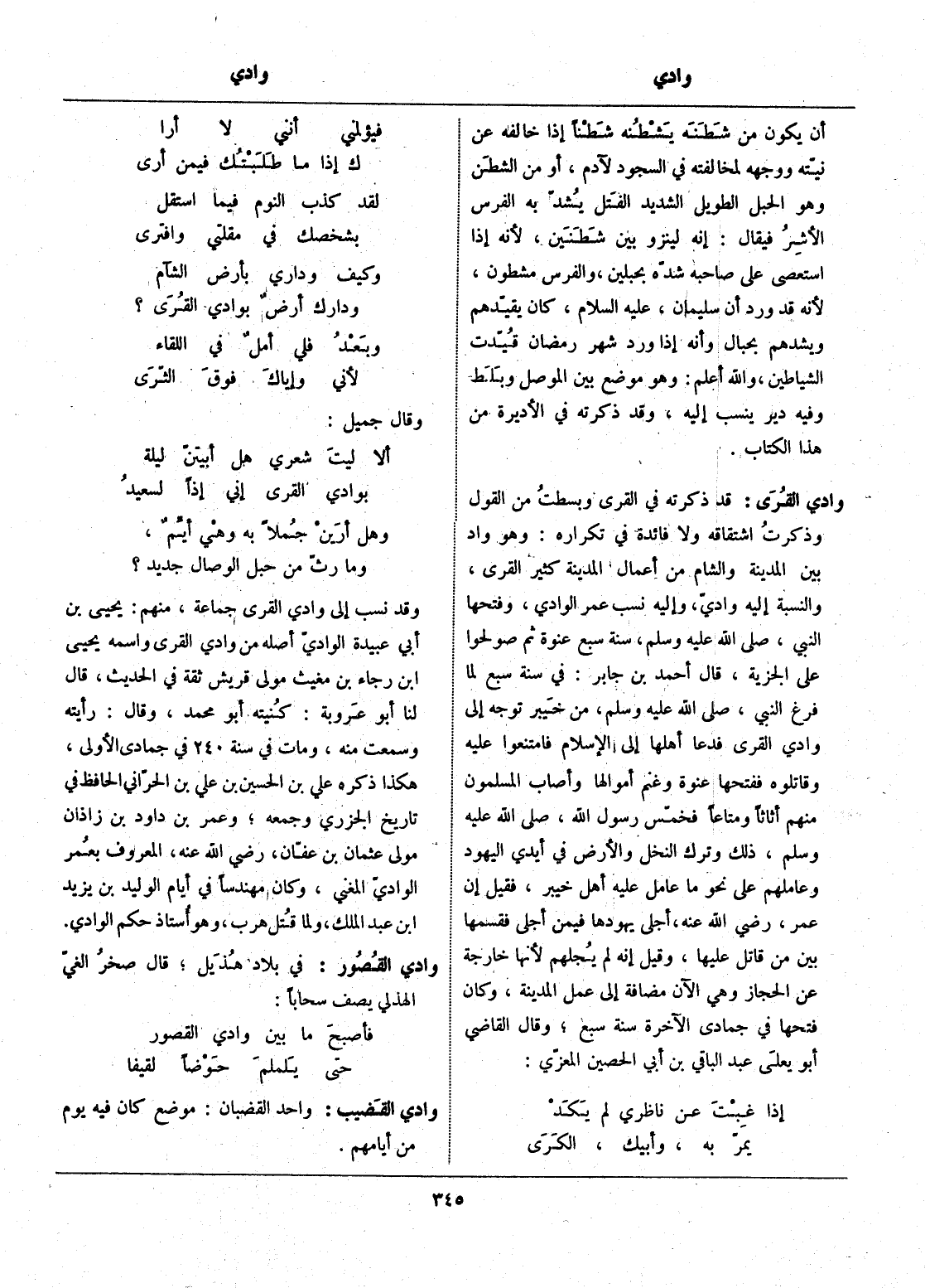 قد ذكرته في القرى وبسطت من القول وذكرت اشتقاقه ولا فائدة في تكراره: وهو واد بين المدينة والشام من أعمال المدينة كثير القرى، والنسبة إليه واديّ، وإليه نسب عمر الوادي، وفتحها النبي، صلّى الله عليه وسلّم، سنة سبع عنوة ثم صولحوا على الجزية، قال أحمد بن جابر: في سنة سبع لما فرغ النبي، صلّى الله عليه وسلّم، من خيبر توجه إلى وادي القرى فدعا أهلها إلى الإسلام فامتنعوا عليه وقاتلوه ففتحها عنوة وغنم أموالها وأصاب المسلمون منهم أثاثا ومتاعا فخمّس رسول الله، صلّى الله عليه وسلّم، ذلك وترك النخل والأرض في أيدي اليهود وعاملهم على نحو ما عامل عليه أهل خيبر، فقيل إن عمر، رضي الله عنه، أجلى يهودها فيمن أجلى فقسمها بين من قاتل عليها، وقيل إنه لم يجلهم لأنها خارجة عن الحجاز وهي الآن مضافة إلى عمل المدينة، وكان فتحها في جمادى الآخرة سنة سبع، وقال القاضي أبو يعلى عبد الباقي بن أبي الحصين المعزّي: