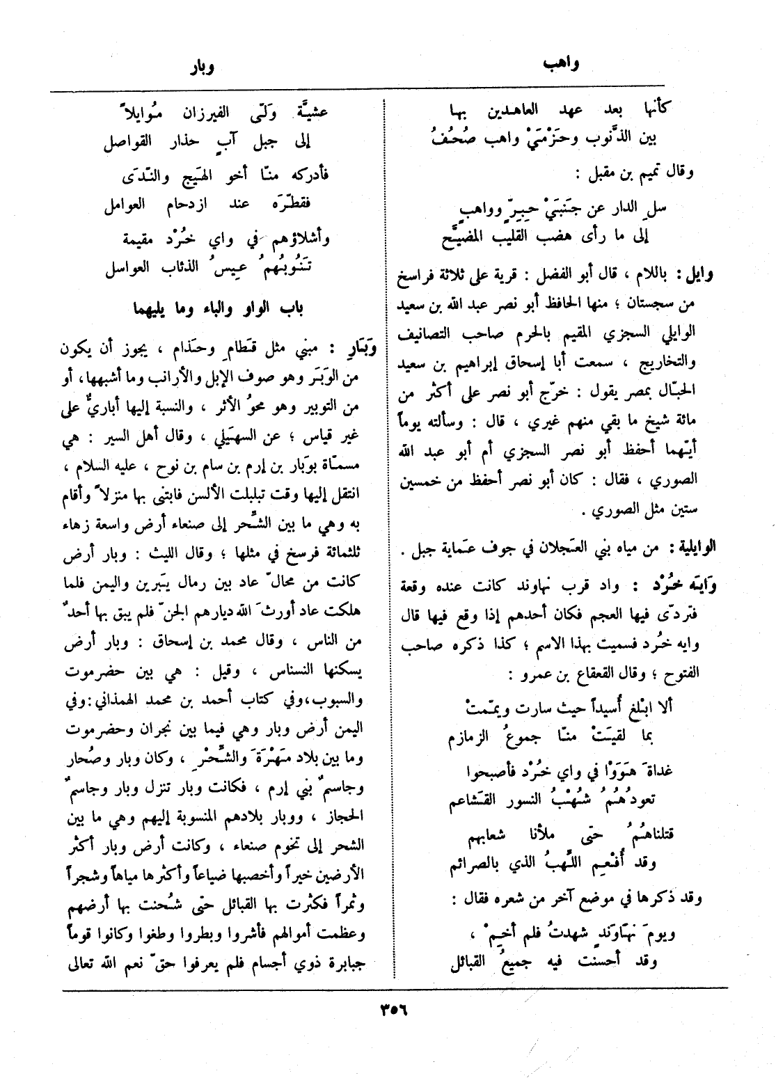 باب الواو والباء وما يليهما