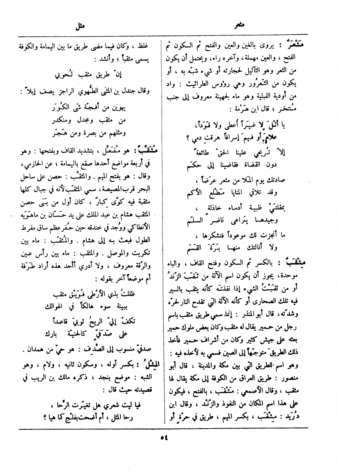 إنّ طريق مثقب لحوبي وقال جندل بن المثنى الطّهوي الراجز يصف إبلا: