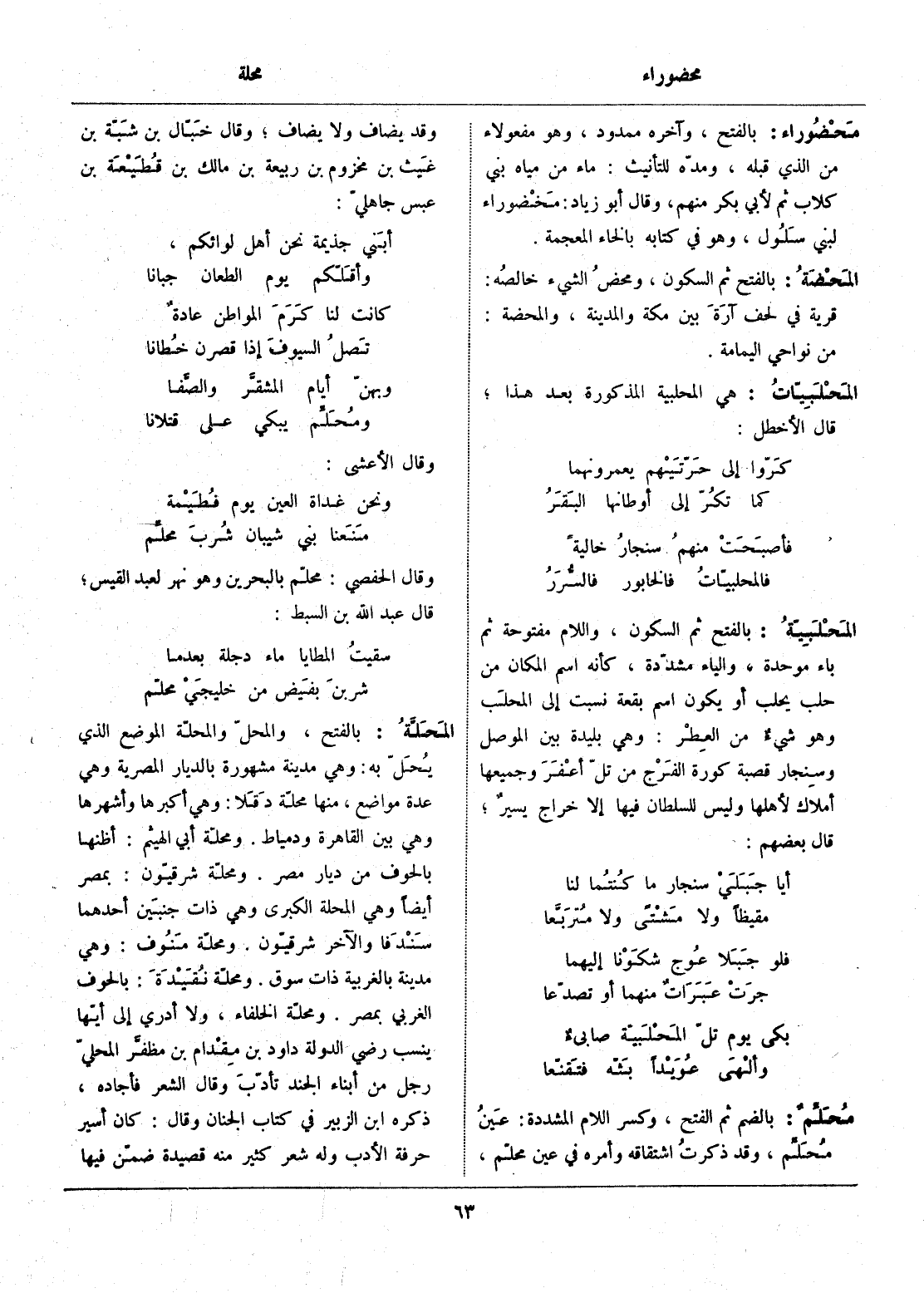 وقال الحفصي: محلّم بالبحرين وهو نهر لعبد القيس، قال عبد الله بن السبط: