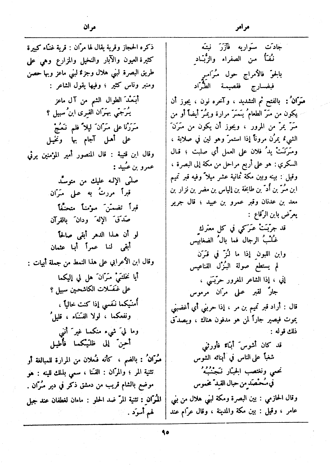 بالضم، كأنه فعلان من المرارة للمبالغة أو تثنية المر، والمرّان: القنا، سمي بذلك للينه: هو موضع بالشام قريب من دمشق ذكر في دير مرّان.