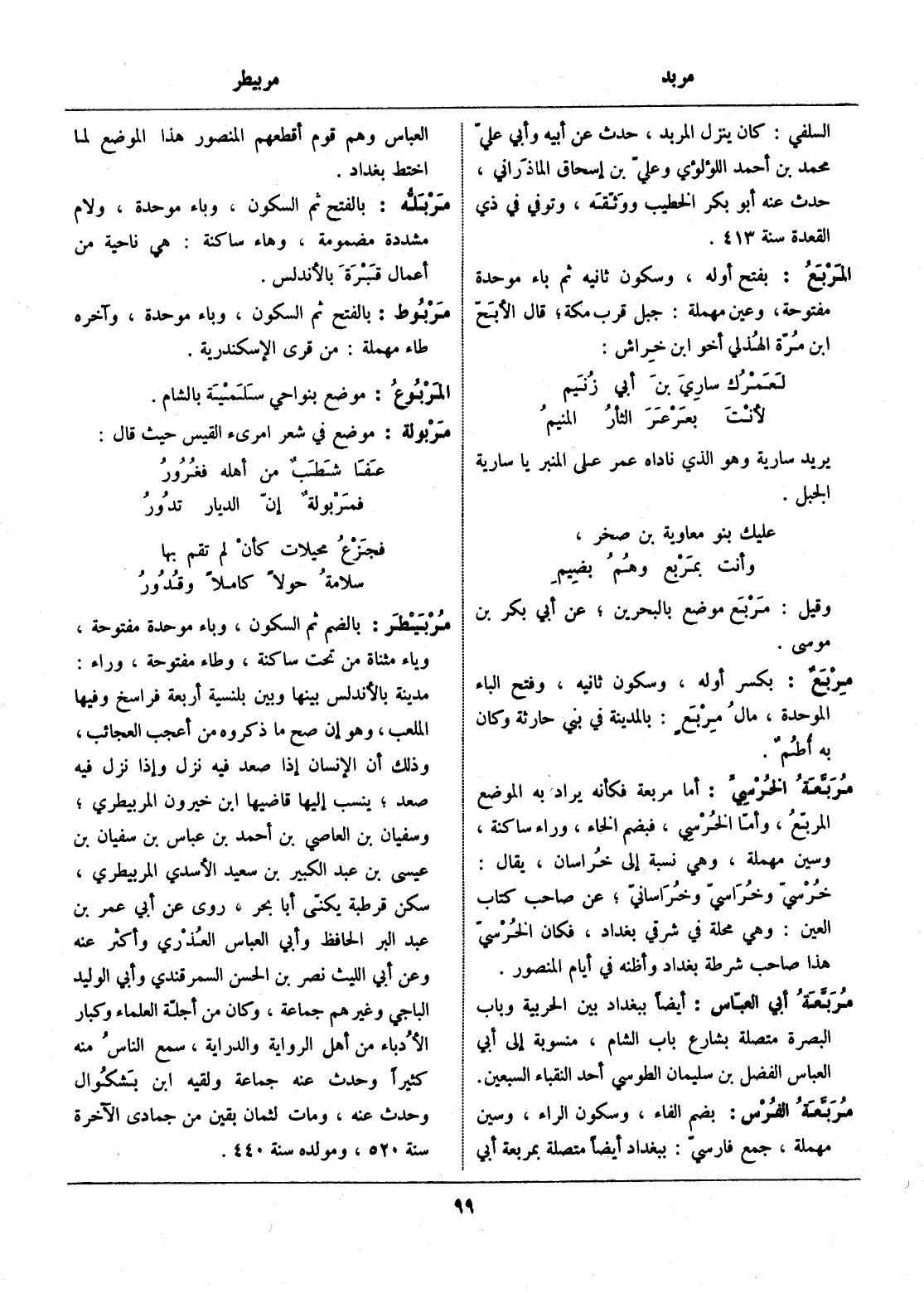 وقيل: مربع موضع بالبحرين، عن أبي بكر بن موسى.