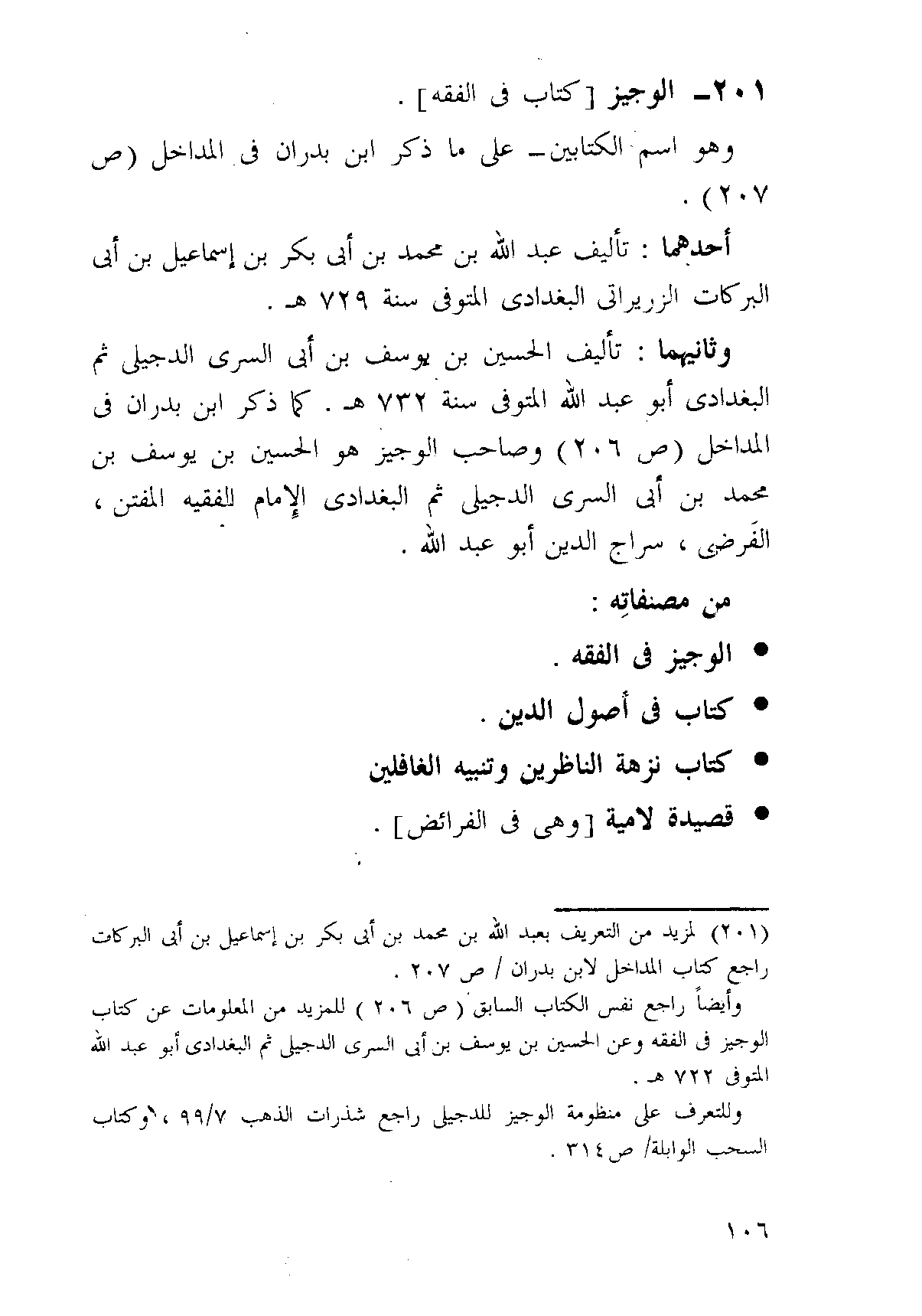 توفّي صَاحب الْوَجِيز فِي ربيع الأول سنة 732 هـ وَجَاء فِي شذرات الذَّهَب وَفِي كتاب السحب الوابلة أَن لهَذَا الْكتاب كتاب الْوَجِيز فِي الْفِقْه من تأليف الْحُسَيْن بن يُوسُف بن أبي السرى الدجيلى منظومة اسْمهَا منظومة الْوَجِيز تزيد على سِتَّة آلَاف بَيت من جملَة مَا نقل عَن المرداوى فِي الْإِنْصَاف وَهِي من نظم أبي الْفَتْح نصر الله بن أَحْمد بن عمر الْجلَال التسترى الْبَغْدَادِيّ الْمُتَوفَّى سنة 812 هـ