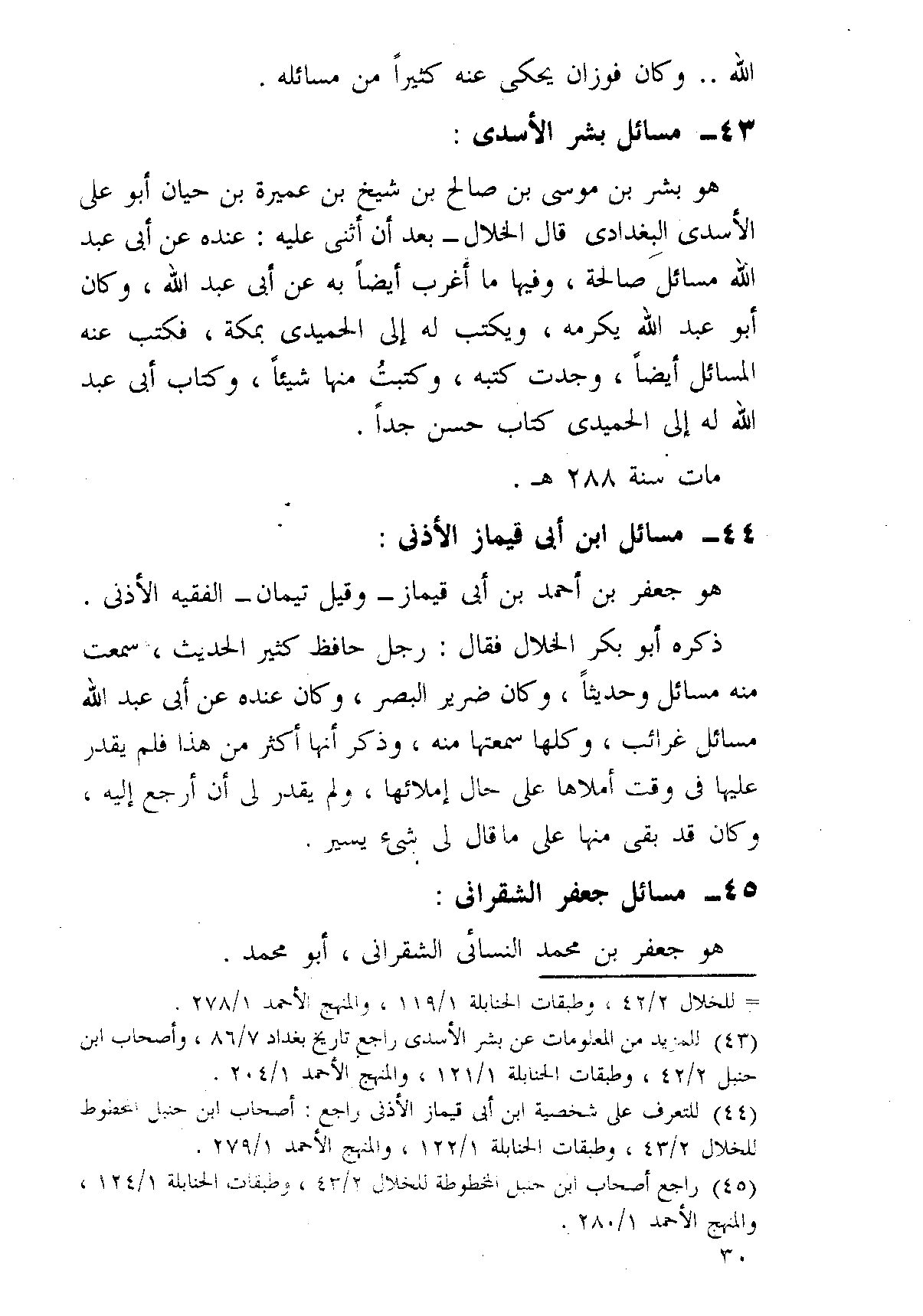 ذكره أَبُو بكر الْخلال فَقَالَ عِنْده عَن أبي عبد الله مسَائِل كَثِيرَة حسان كبار مشبعة وأساس علل الْأَحَادِيث لم يروها غَيره وَله فِي الْأَحْكَام أَيْضا