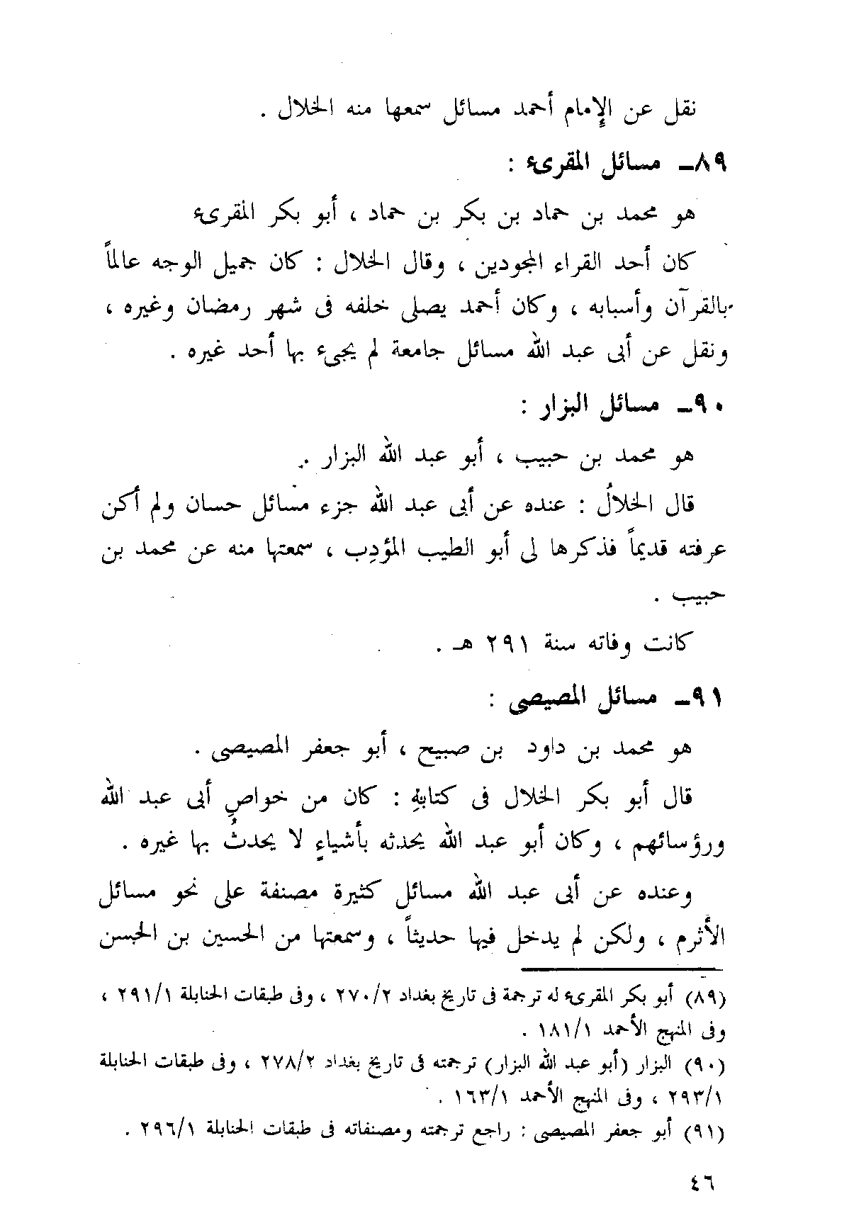 ذكره أَبُو بكر الْخلال فَقَالَ جليل روى عَن أبي عبد الله مسَائِل صَالِحَة حسانا أغرب فِيهَا مقدم عِنْدهم