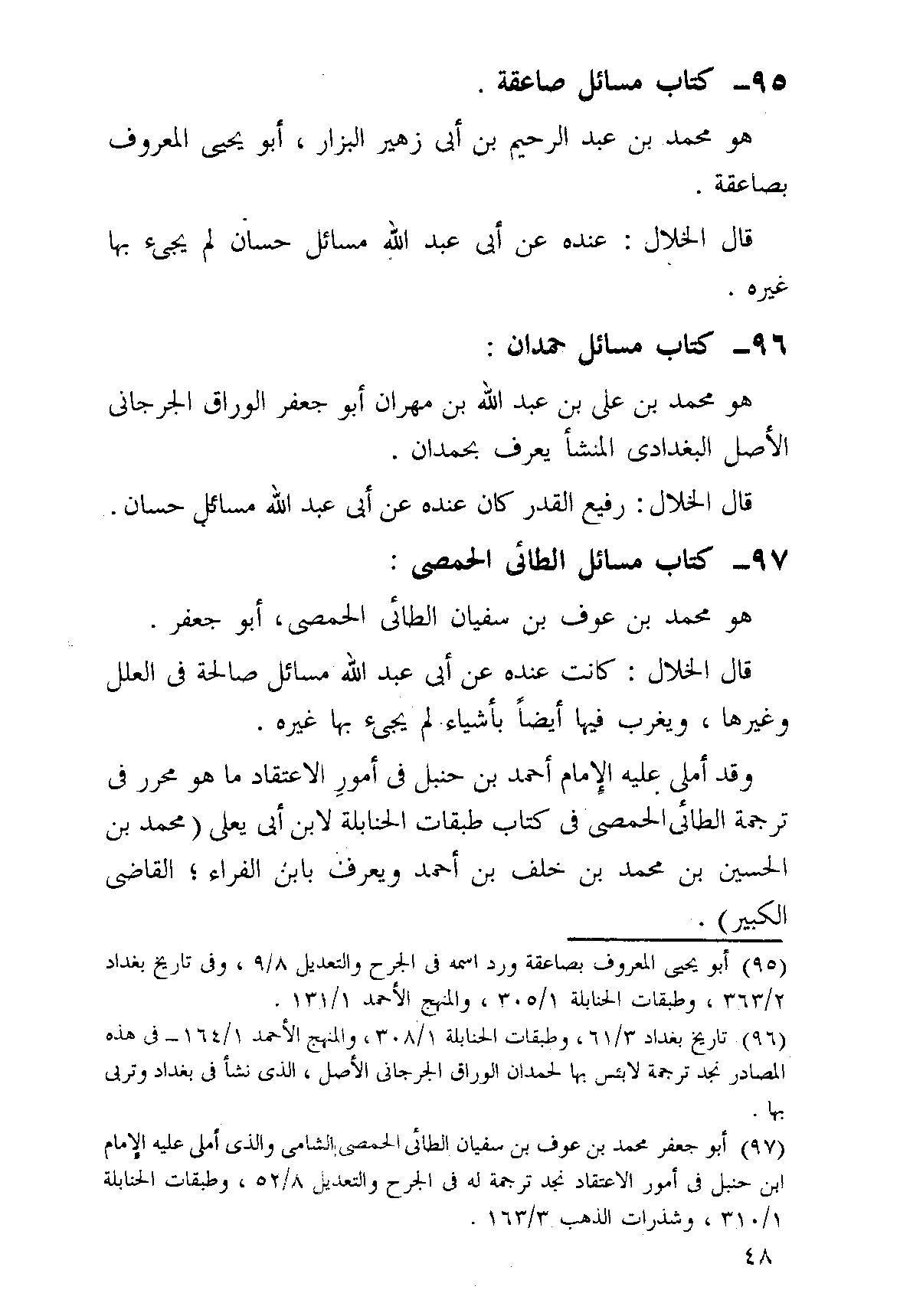 قَالَ الْخلال رجل مَعْرُوف جليل مقرىء كَانَ عِنْده عَن أبي عبد الله جُزْء مسَائِل كبار جِيَاد فَسَأَلته عَنْهَا فَقَالَ قدم رجل من خُرَاسَان وَمَعَهُ مسَائِل