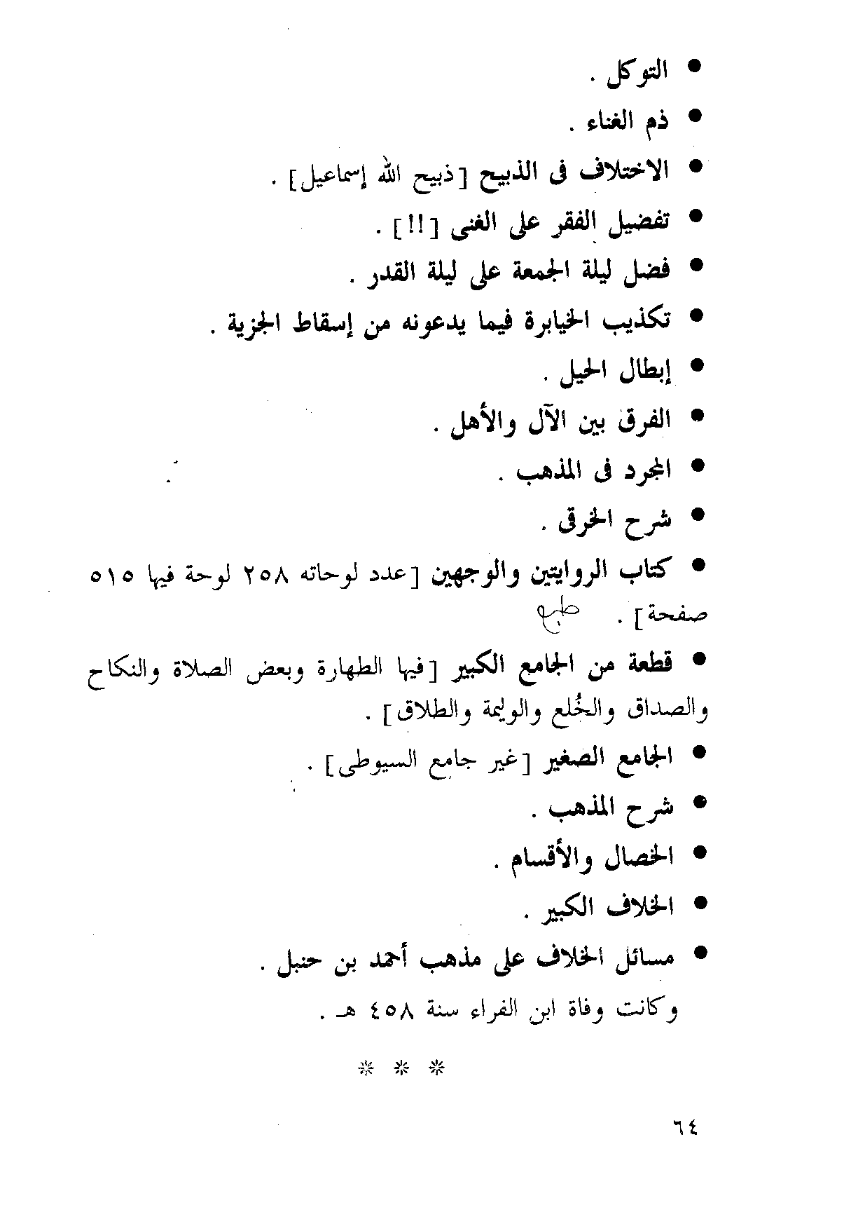 وَمن الَّذين ألفوا فِي الرِّوَايَتَيْنِ والوجهين أَبُو الْوَفَاء بن عقيل على ابْن مُحَمَّد بن عقيل الْبَغْدَادِيّ الإِمَام الْفَقِيه الأصولى المقرىء أوحد الْمُجْتَهدين صَاحب المؤلفات وَمِنْهَا