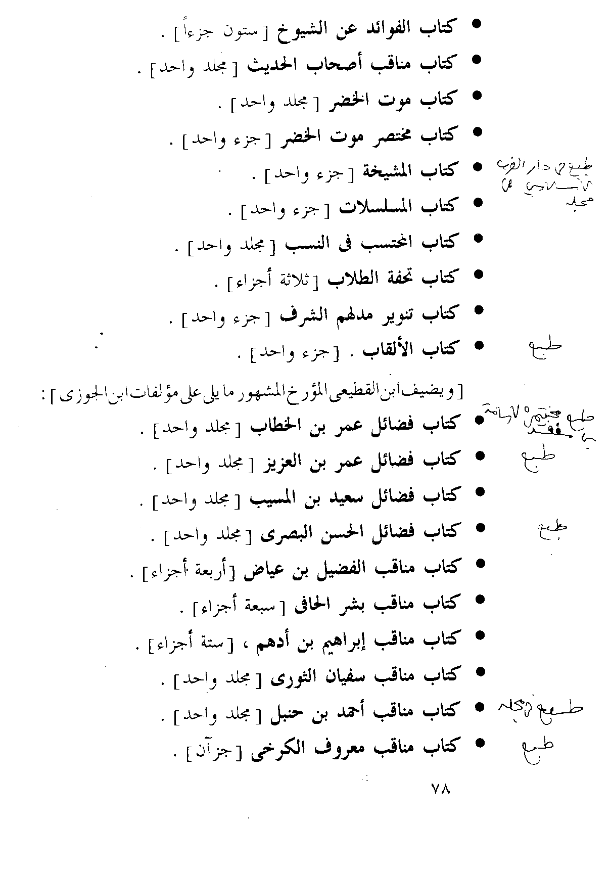 كتاب الْمُخْتَار من أَخْبَار الأخيار مُجَلد وَاحِد كتاب الْقَاطِع لمحال اللجاج الْقَاطِع بمحال الحلاج (جُزْء وَاحِد) .