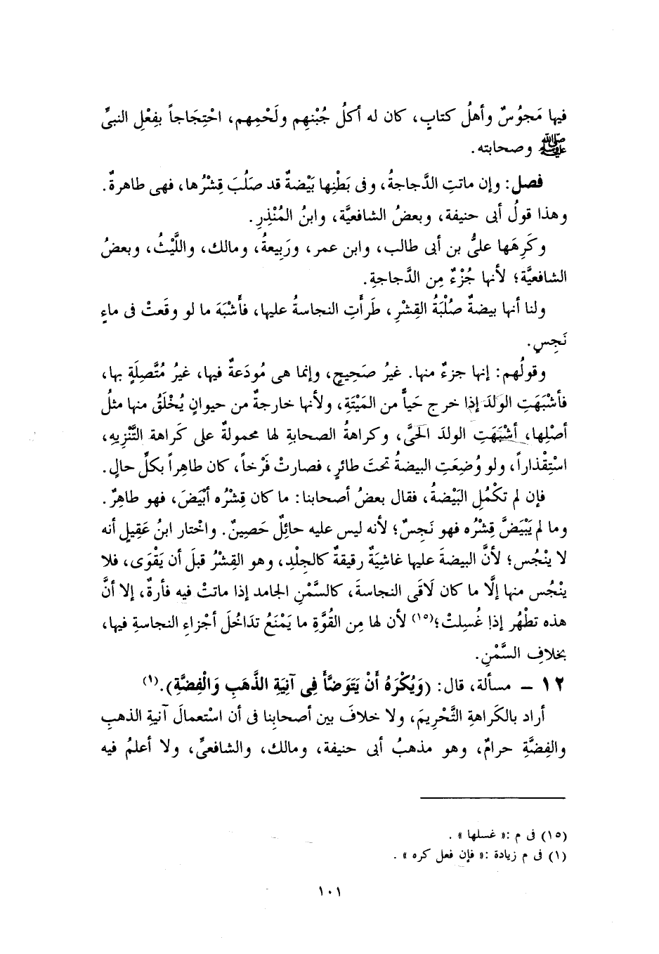 ١٢ - مسألة، قال: (وَيُكْرَهُ أنْ يَتَوَضَّأَ في آنِيَةِ الذَّهَبِ وَالْفِضَّةِ) (١).