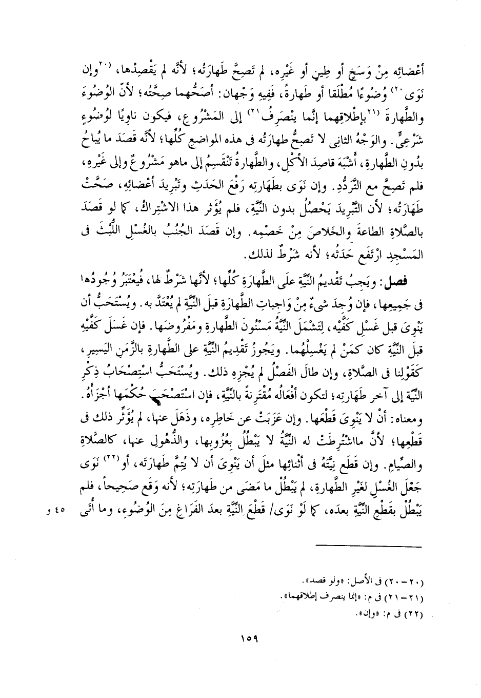 فصل: ويَجِبُ تَقْديمُ النِّيَّةِ علَى الطَّهارَةِ كُلِّها؛ لأنَّها شَرْطٌ لها، فيُعْتَبَرُ وُجُودُها في جَمِيعِها، فإن وُجِدَ شيءٌ مِنْ وَاجباتِ الطَّهارَةِ قبلَ النِّيَّةِ لم يُعْتَدَّ به. ويُسْتَحَبُّ أن يَنْوِىَ قبل غَسْلِ كَفَّيْه، لِتَشْمَلَ النِّيَّةُ مَسْنُونَ الطَّهارةِ ومَفْرُوضَها. فإن غَسَلَ كَفَّيْهِ قبلَ النِّيَّةِ كان كمَنْ لم يَغْسِلْهُما. ويَجُوزُ تَقْدِيمُ النِّيَّةِ على الطَّهارةِ بالزَّمَنِ اليَسِيرِ، كَقَوْلِنا في الصَّلاةِ، وإن طالَ الفَصْلُ لم يُجْزِهِ ذلك. ويُسْتَحَبُّ اسْتِصْحَابُ ذِكْرِ النِّيّة إلى آخر طَهَارتِه؛ لتكون أفْعَالُه مُقْتَرِنةً بالنِّيَّةِ، فإن اسْتَصْحَبَ حُكْمَها أجْزَأَهُ. ومعناه: أنْ لا يَنْوِىَ قَطْعَها. وإن عَزَبَتْ عن خَاطِرِه، وذَهَلَ عنها، لم يُؤَثِّر ذلك في قَطْعِها؛ لأنَّ ما اشْتُرِطَتْ له النِّيَّةُ لا يَبْطُلُ بِعُزُوبِها، والذُّهُولِ عنها، كالصَّلاةِ والصِّيامِ. وإن قَطَع نِيَّتَهُ في أثْنائِها مثلَ أن يَنْوِىَ أن لا يُتِمَّ طَهارَتَه، أو (٢٢) نَوَى جَعْلَ الغُسْلِ لغَيْرِ الطَّهارةِ، لم يَبْطُلْ ما مَضَى من طَهارَتِه؛ لأنه وَقَع صَحِيحًا، فلم يَبْطُلْ بقَطْعِ النِّيَّةِ بعدَه، كما لَوْ نَوَى قَطْعَ النِّيَّةِ بعدَ الفَرَاغِ مِنَ الوُضُوءِ، وما أَتَى