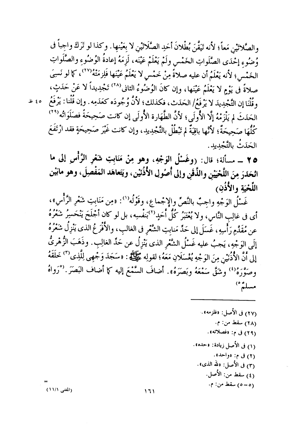٢٥ - مسألة؛ قال: (وغَسْلُ الوَجْهِ، وهو مِنْ مَنَابِتِ شَعْرِ الرَّأْسِ إلى ما انْحَدَرَ مِنَ اللَّحْيَيْنِ والذَّقَنِ وإلى أُصُولِ الأُذُنَيْن، ويَتَعاهَد المَفْصِلَ، وهو ما بَيْن اللِّحْيَةِ والأُذُنِ)