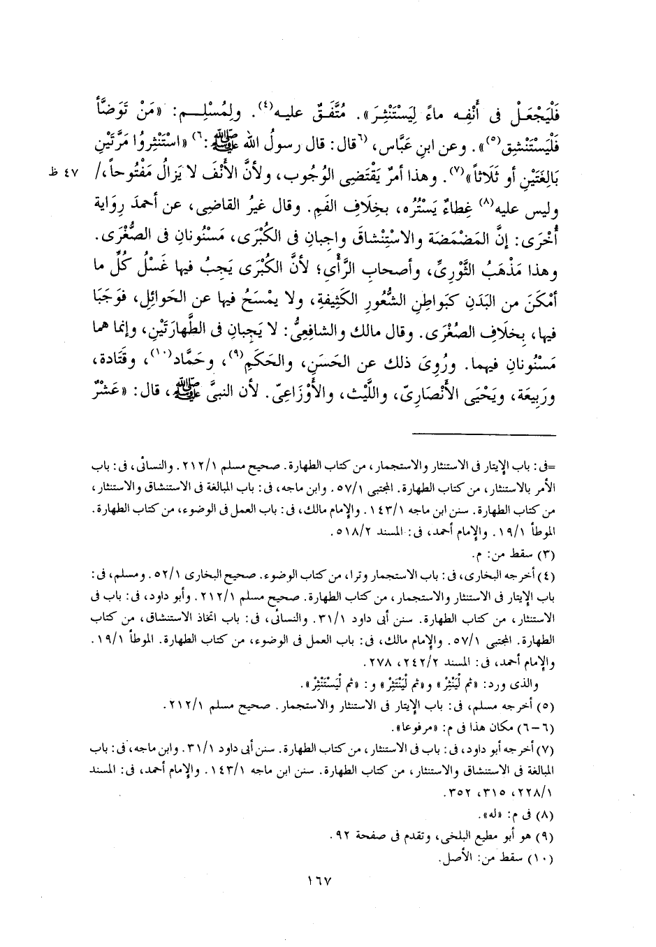 (٤) أخرجه البخاري، في: باب الاستجمار وترا، من كتاب الوضوء. صحيح البخاري ١/ ٥٢. ومسلم، في: باب الإِيتار في الاستنثار والاستجمار، من كتاب الطهارة. صحيح مسلم ١/ ٢١٢. وأبو داود، في: باب في الاستنثار، من كتاب الطهارة. سنن أبي داود ١/ ٣١. والنسائي، في: باب اتخاذ الاستنشاق، من كتاب الطهارة. المجتبى ١/ ٥٧. والإِمام مالك، في: باب العمل في الوضوء، من كتاب الطهارة. الموطأ ١/ ١٩. والإِمام أحمد، في: المسند ٢/ ٢٤٢، ٢٧٨.