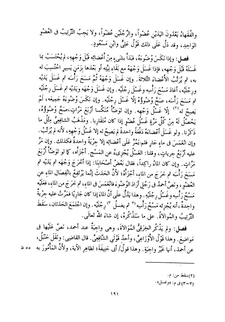 والفُقَهاءُ يَعُدّونَ اليَدَيْنِ عُضْوًا، والرِّجْلَيْنِ عُضْوًا، ولا يَجِبُ التَّرْتِيبُ في العُضْوِ الوَاحِدِ، وقد دَلَّ عَلَى ذلك قَوْلُ عَلِىٍّ وابْنِ مَسْعُودٍ.