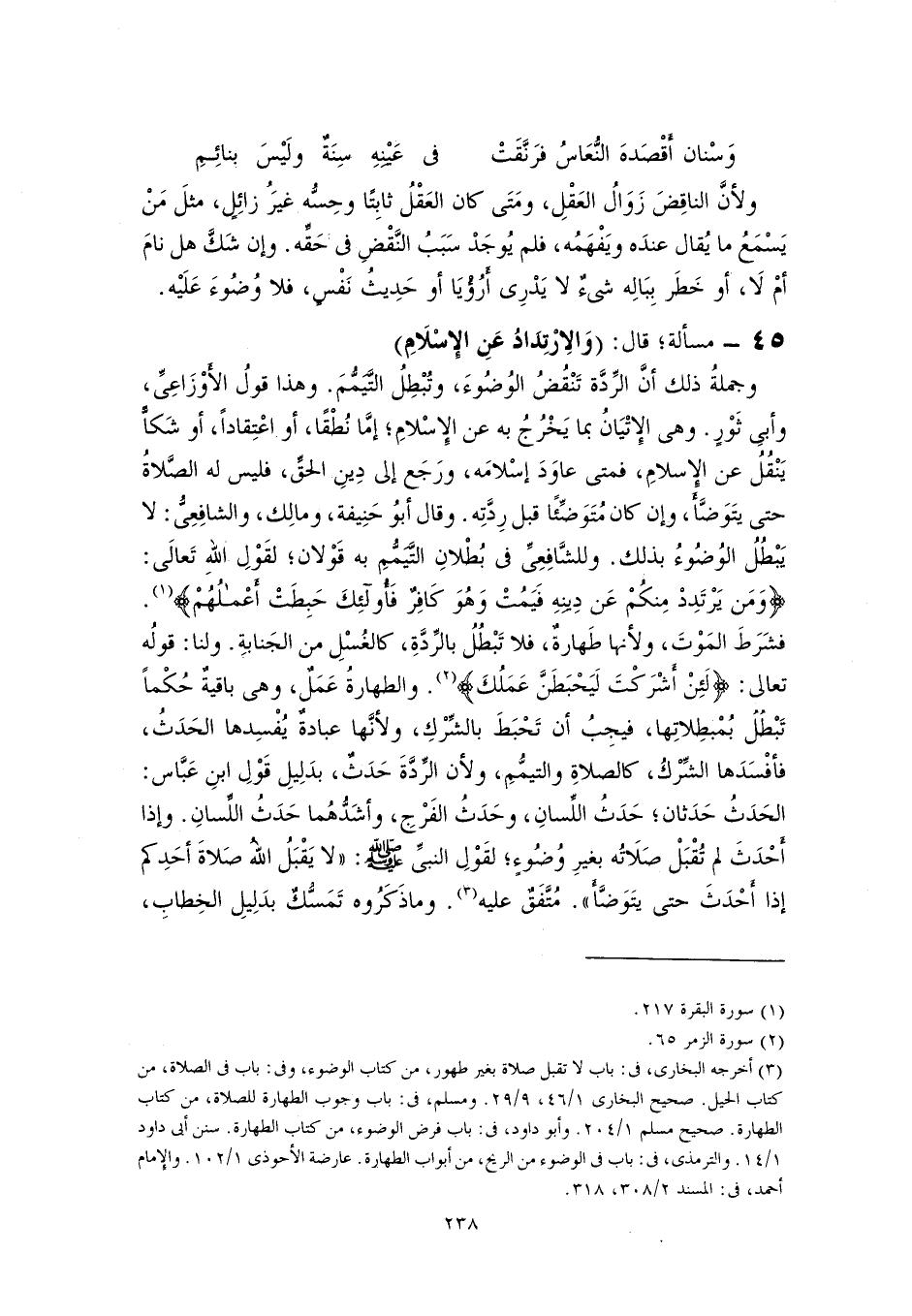 ٤٥ - مسألة؛ قال: (وَالِارْتِدادُ عَنِ الإِسْلَامِ)