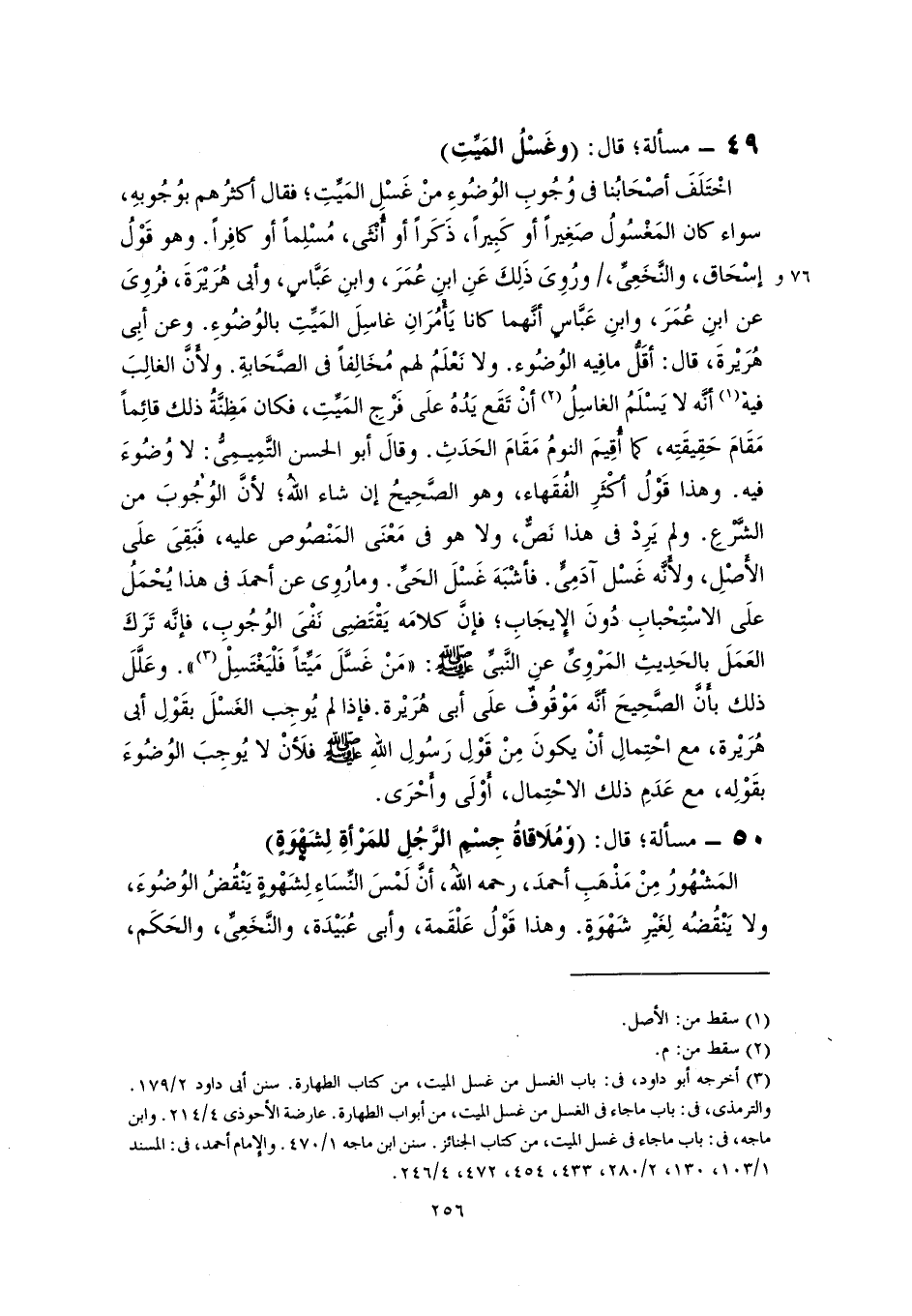 (٣) أخرجه أبو داود، في: باب الغسل من غسل الميت، من كتاب الطهارة. سنن أبي داود ٢/ ١٧٩. والترمذي، في: باب ما جاء في الغسل من غسل الميت، من أبواب الطهارة. عارضة الأحوذى ٤/ ٢١٤. وابن ماجه، في: باب ما جاء في غسل الميت، من كتاب الجنائز. سنن ابن ماجه ١/ ٤٧٠. والإمام أحمد، في: المسند ١/ ١٠٣، ١٣٠، ٢/ ٢٨٠، ٤٣٣، ٤٥٤، ٤٧٢، ٤/ ٢٤٦.
