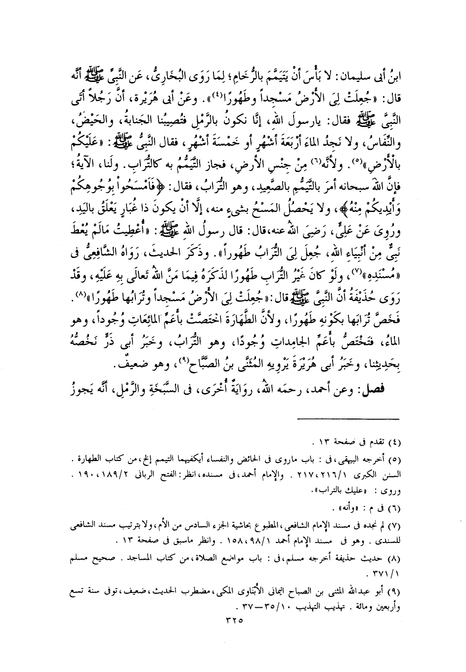 فصل: وعن أحمد، رحمَه اللهُ، روَايَةٌ أُخْرَى، في السَّبَخَةِ والرَّمْلِ، أنَّه يَجوزُ