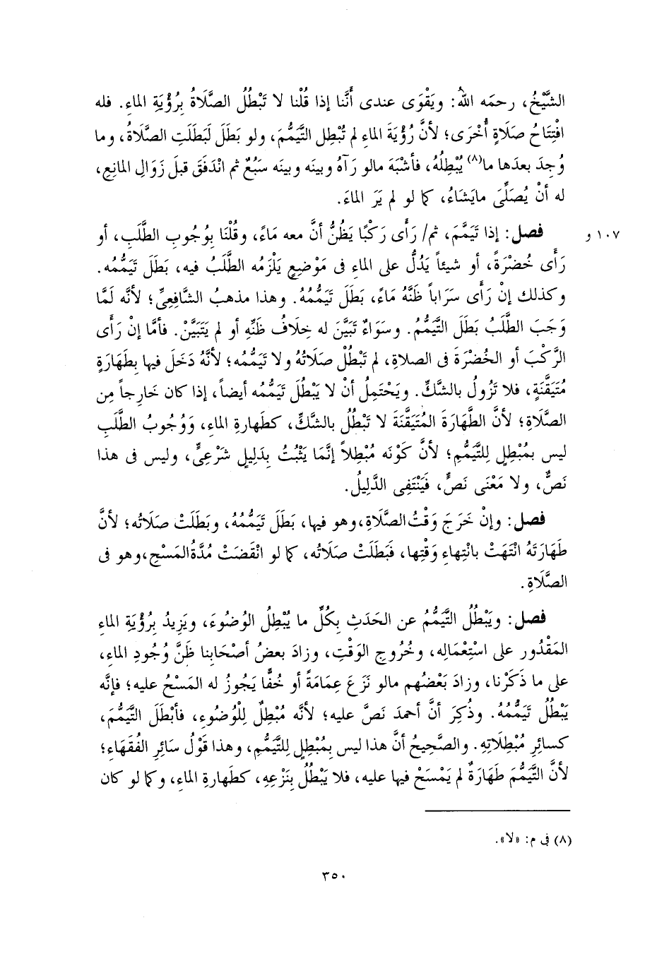 الشَّيْخُ، رحمَه اللهُ: ويَقْوَى عندى أَنَّنا إذا قُلْنا لا تَبْطُلُ الصَّلَاةُ بِرُؤْيَةِ الماءِ. فله افْتِتَاحُ صَلَاةٍ أُخْرَى؛ لأنَّ رُؤْيَةَ الماءِ لم تُبْطِل التَّيَمُّمَ، ولو بَطلَ لَبَطَلَتِ الصَّلَاةُ، وما وُجِدَ بعدَها ما (٨) يُبْطِلُهُ، فأشْبَهَ ما لو رَآهُ وبينَه وبينَه سَبُعٌ ثم انْدَفَقَ قبلَ زَوَالِ المانِعِ، له أنْ يُصَلِّىَ ما يَشَاءُ، كما لو لم يَرَ الماءَ.