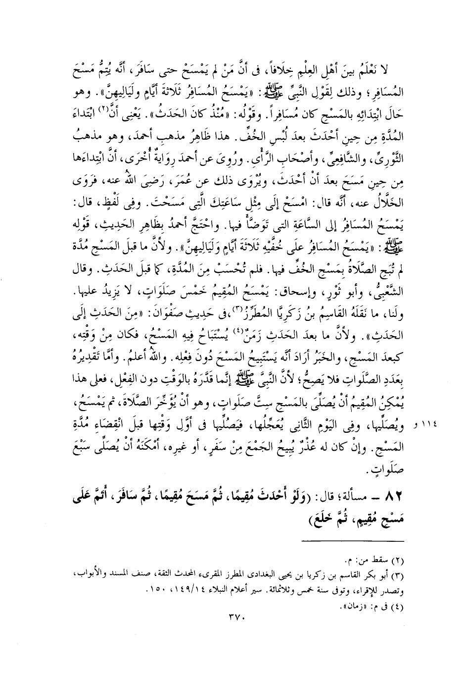 ٨٢ - مسألة؛ قال: (وَلَوْ أَحْدَثَ مُقِيمًا، ثُمَّ مَسَحَ مُقِيمًا، ثُمَّ سَافَرَ، أَتَمَّ عَلَى مَسْحِ مُقِيمٍ، ثُمَّ خَلَعَ)