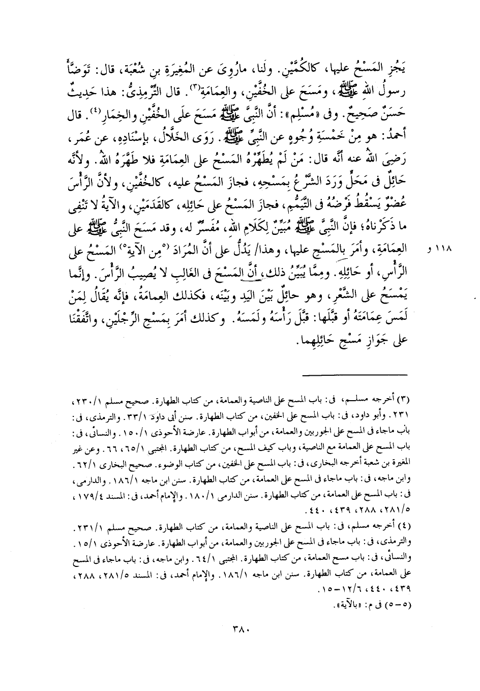 (٤) أخرجه مسلم، في: باب المسح على الناصية والعمامة، من كتاب الطهارة. صحيح مسلم ١/ ٢٣١. والترمذي، في: باب ما جاء في المسح على الجوربين والعمامة، من أبواب الطهارة. عارضة الأحوذى ١/ ١٥. والنسائي، في: باب مسح العمامة، من كتاب الطهارة. المجتبى ١/ ٦٤. وابن ماجه، في: باب ما جاء في المسح على العمامة، من كتاب الطهارة. سنن ابن ماجه ١/ ١٨٦. والإمام أحمد، في: المسند ٥/ ٢٨١، ٢٨٨، ٤٣٩، ٤٤٠، ٦/ ١٢ - ١٥.