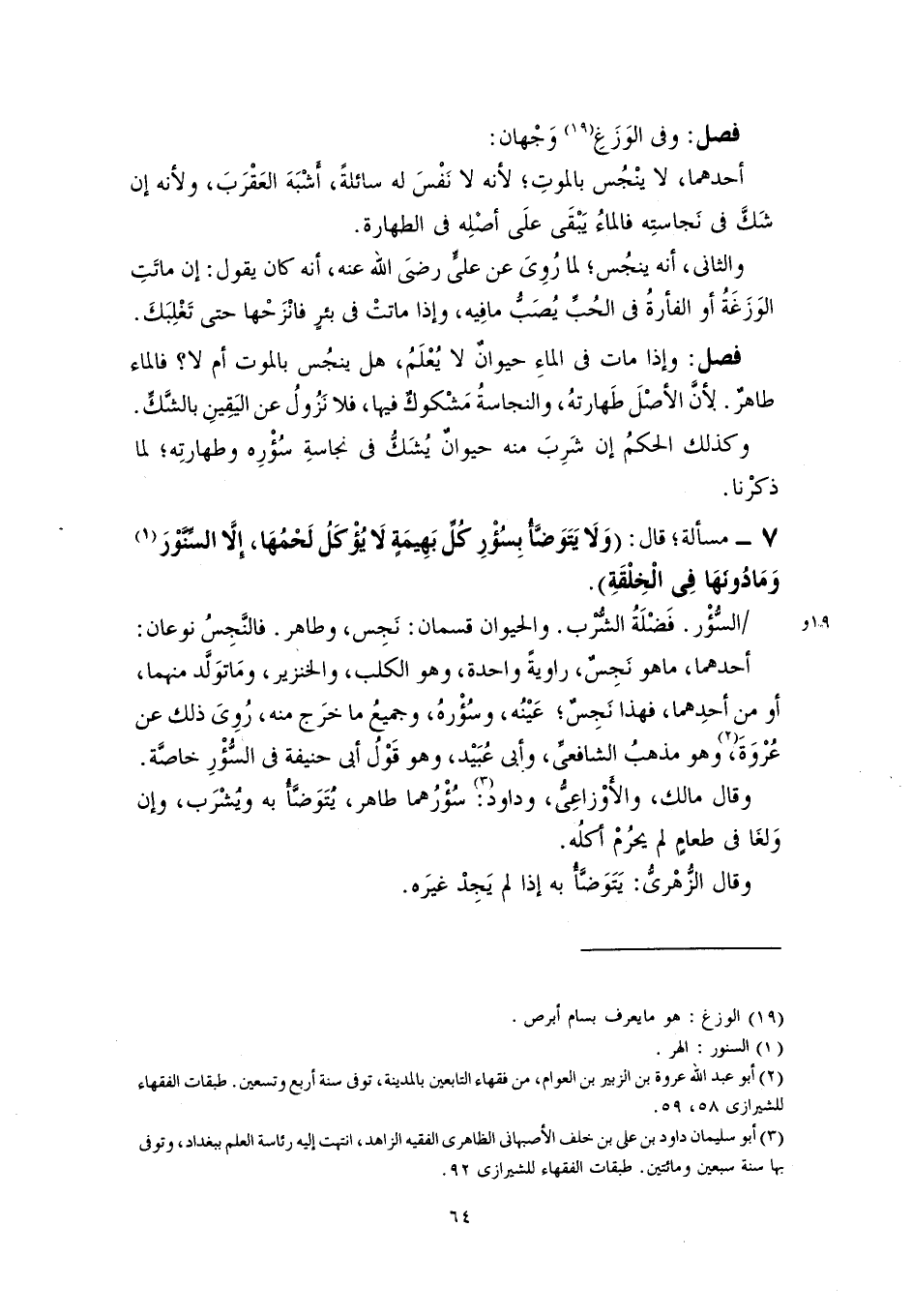 فصل: وفي الوَزَغِ (١٩) وَجْهان: