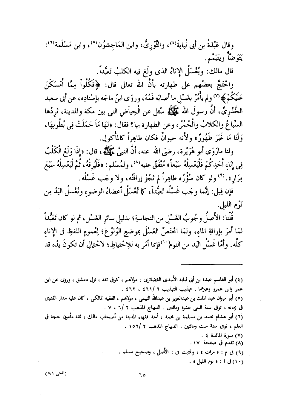 ولنا ما رَوَى أبو هُرَيْرة، رضىَ اللَّه عنه، أنَّ النبيَّ -صلى اللَّه عليه وسلم-، قال: "إِذَا وَلَغَ الْكَلْبُ فِي إِنَاءِ أَحَدِكُمْ فَلْيَغْسِلْهُ سَبْعًا" مُتَّفَقٌ عليه (٨)، ولمُسْلم: "فَلْيُرِقْهُ، ثُمَّ لْيَغْسِلْهُ سَبْعَ مِرَارٍ". (٩) ولو كان سُؤْرُه طاهِرًا لم تَجُزْ إراقَتُه، ولا وجَب غَسْلُه.