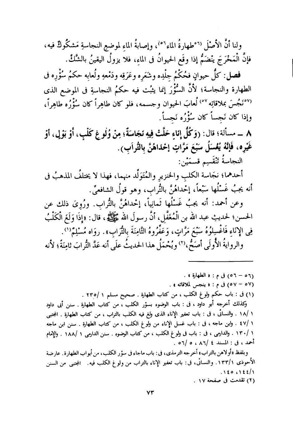 (١) في: باب حكم ولوغ الكلب، من كتاب الطهارة. صحيح مسلم ١/ ٢٣٥.