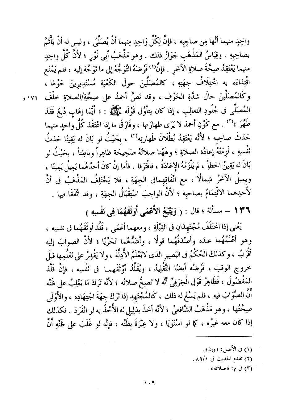 ١٣٦ - مسألة؛ قال: (وَيَتْبَعُ الأَعْمَى أَوْثَقَهُمَا فِي نَفْسِهِ)