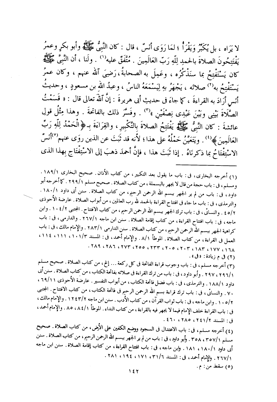 (١) أخرجه البخاري، في: باب ما يقول بعد التكبير، من كتاب الأذان. صحيح البخاري ١/ ١٨٩. ومسلم، في: باب حجة من قال لا يجهر بالبسملة، من كتاب الصلاة. صحيح مسلم ١/ ٢٩٩. كما أخرجه أبو داود، في: باب من لم ير الجهر ببسم اللَّه الرحمن الرحيم، من كتاب الصلاة. سنن أبي داود ١/ ١٨٠. والترمذي، في: باب ما جاء في افتتاح القراءة بالحمد للَّه رب العالمين، من أبواب الصلاة. عارضة الأحوذى ٢/ ٤٥. والنسائي، في: باب ترك الجهر ببسم اللَّه الرحمن الرحيم، من كتاب الافتتاح. المجتبى ٢/ ١٠٤. وابن ماجه، في: باب افتتاح القراءة، من كتاب إقامة الصلاة. سنن ابن ماجه ١/ ٢٦٧. والدارمي، في: باب كراهية الجهر ببسم اللَّه الرحمن الرحيم، من كتاب الصلاة. سنن الدارمي ١/ ٢٨٣. والإمام مالك، في: باب العمل في القراءة، من كتاب الصلاة. الموطأ ١/ ٨. والإمام أحمد، في: المسند ٣/ ١٠١، ١١١، ١١٤، ١٦٨، ١٧٧، ١٨٣، ٢٠٣، ٢٠٥، ٢٣٣، ٢٥٥، ٢٧٣، ٢٨٦، ٢٨٩.