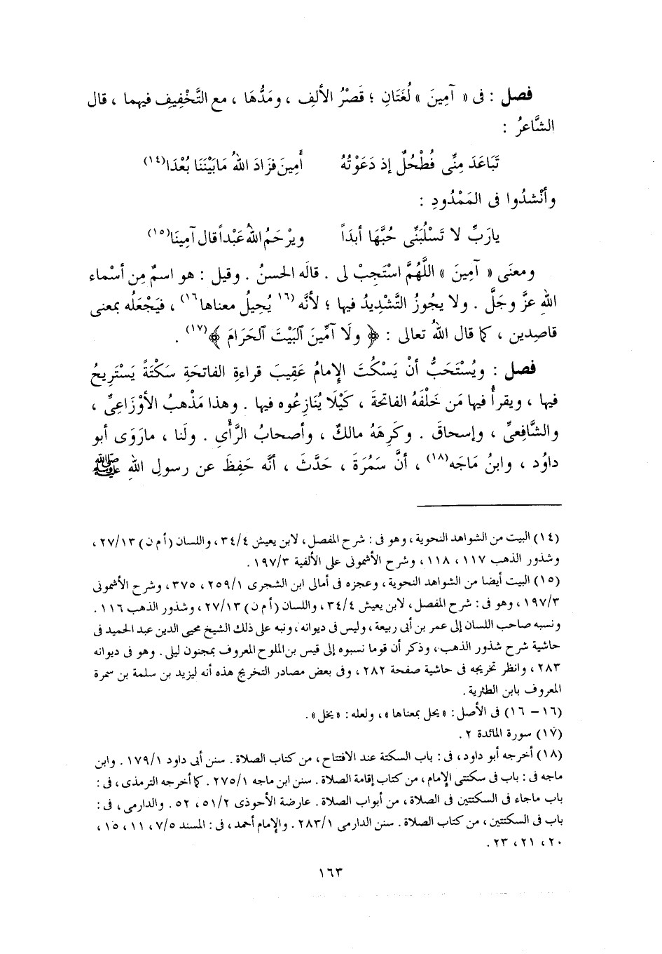 فصل: في "آمِينَ" لُغَتَانِ؛ قَصْرُ الألفِ، ومَدُّهَا، مع التَّخْفِيفِ فيهما، قال الشَّاعرُ: