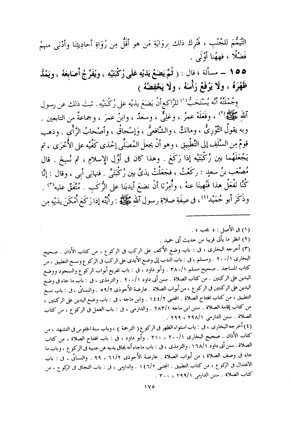 (٣) أخرجه البخاري، في: باب وضع الأكف على الركب في الركوع، من كتاب الأذان. صحيح البخاري ١/ ٢٠٠. ومسلم، في: باب الندب إلى وضع الأيدى على الركب في الركوع ونسخ التطبيق، من كتاب المساجد. صحيح مسلم ١/ ٣٨٠. وأبو داود، في: باب تفريع أبواب الركوع والسجود ووضع اليدين على الركبتين. من كتاب الصلاة. سنن أبي داود ١/ ٢٠٠. والترمذي، في: باب ما جاء في وضع اليدين على الركبتين في الركوع، من أبواب الصلاة. عارضة الأحوذى ٢/ ٥٩. والنسائي، في: باب نسخ التطبيق، من كتاب افتتاح الصلاة. المجتبى ٢/ ١٤٤. وابن ماجه، في: باب وضع اليدين على الركبتين، من كتاب إقامة الصلاة. سنن ابن ماجه ١/ ٢٨٣. والدارمى، في: باب العمل في الركوع، من كتاب الصلاة. سنن الدارمي ١/ ٢٩٨، ٢٩٩.