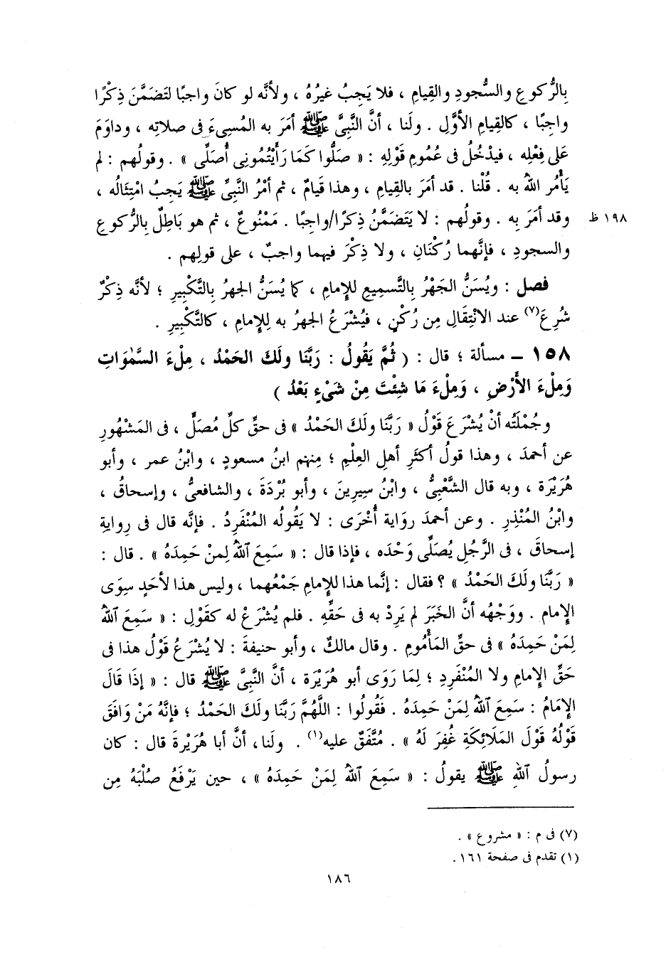 ١٥٨ - مسألة؛ قال: (ثُمَّ يَقُولُ: رَبَّنَا ولَكَ الحَمْدُ، مِلْءَ السَّموَاتِ وَمِلْءَ الأَرْضِ، وَملْءَ مَا شِئْتَ مِنْ شَىْءٍ بعْدُ)