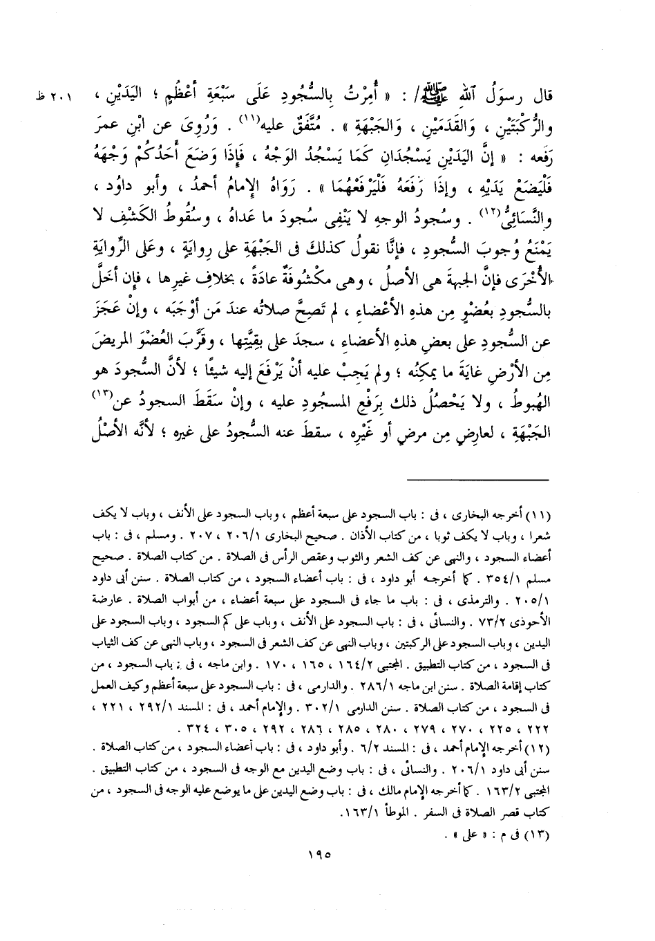 (١٢) أخرجه الإمام أحمد، في: المسند ٢/ ٦. وأبو داود، في: باب أعضاء السجود، من كتاب الصلاة. سنن أبي داود ١/ ٢٠٦. والنسائي، في: باب وضع اليدين مع الوجه في السجود، من كتاب التطبيق. المجتبى ٢/ ١٦٣. كما أخرجه الإِمام مالك، في: باب وضع اليدين على ما يوضع عليه الوجه في السجود، من كتاب قصر الصلاة في السفر. الموطأ ١/ ١٦٣.