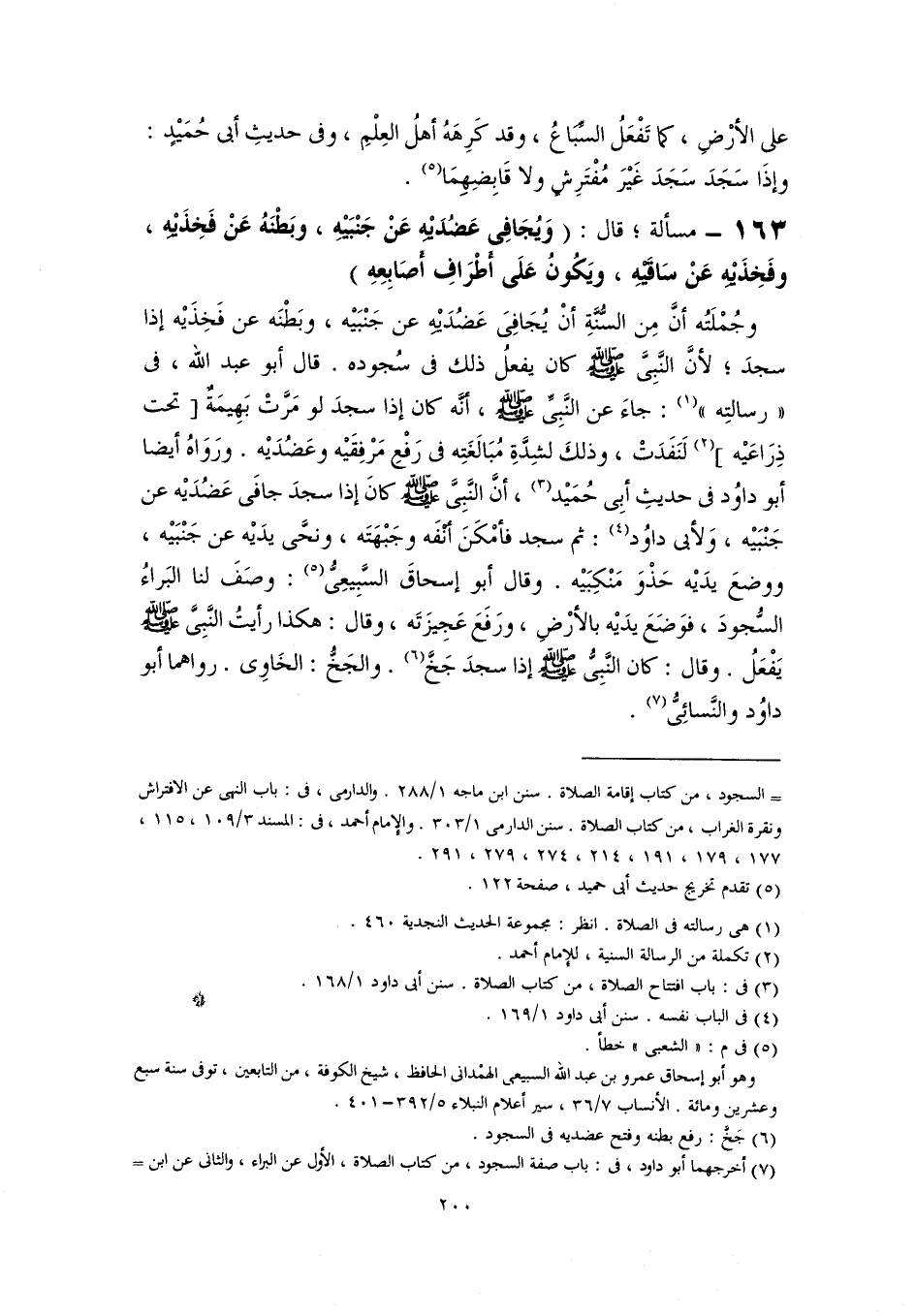 (٧) أخرجهما أبو داود، في: باب صفة السجود، من كتاب الصلاة، الأول عن البراء، والثانى عن ابن =