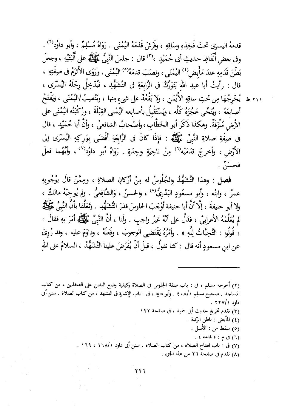 (٢) أخرجه مسلم، في: باب صفة الجلوس في الصلاة وكيفية وضع اليدين على الفخذين، من كتاب المساجد. صحيح مسلم ١/ ٤٠٨. وأبو داود، في: باب الإشارة في التشهد، من كتاب الصلاة. سنن أبي داود ١/ ٢٢٧.