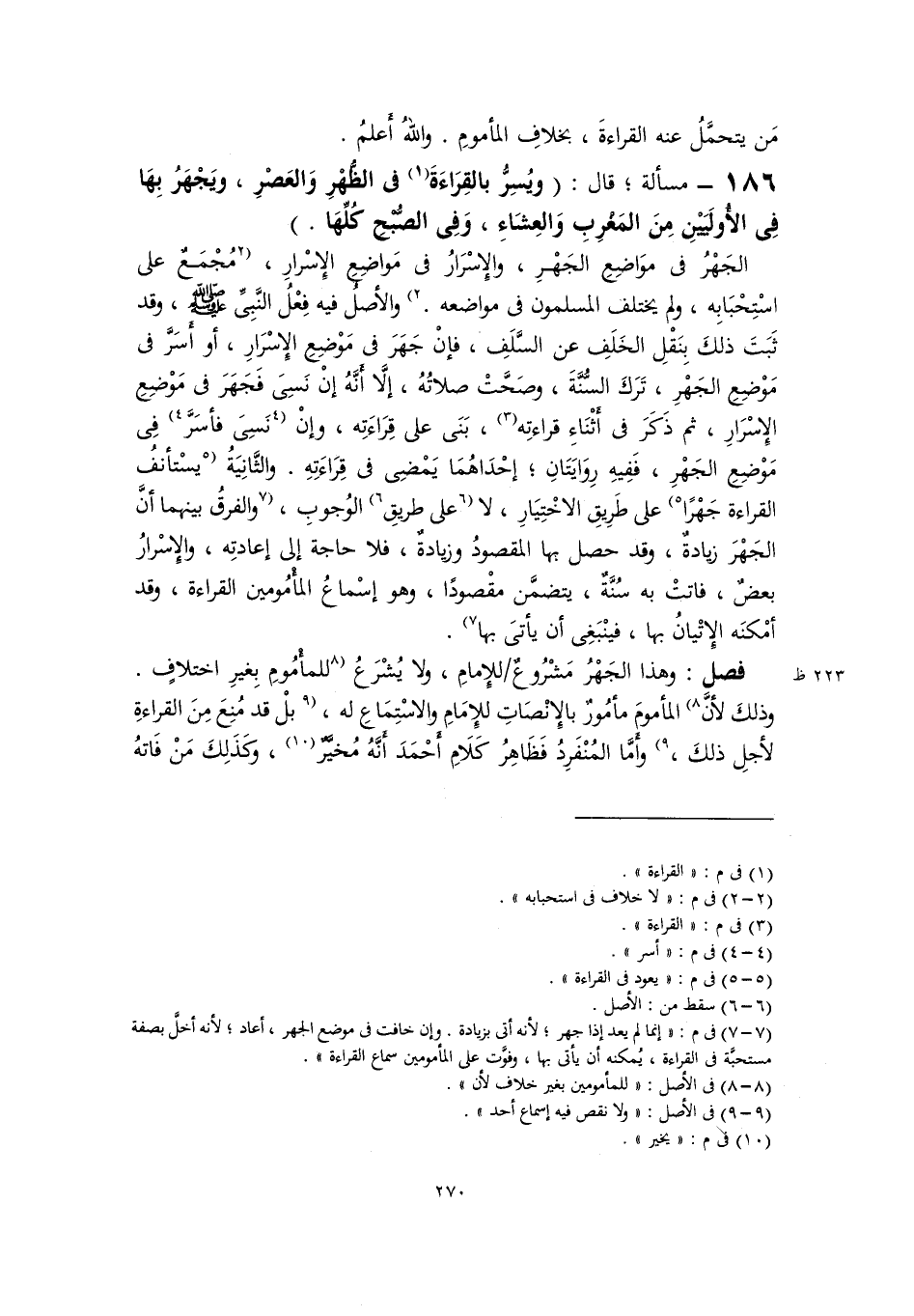 (٨) في الأصل: "للمأمومين بغير خلاف لأن".