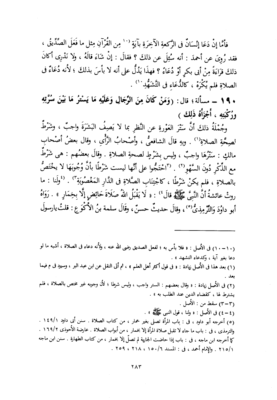 (١٠) في الأصل: "فلا بأس به؛ لفعل الصديق رضى اللَّه عنه، ولأنه دعاء في الصلاة، أشبه ما لو دعا بغير آية، وكدعاء التشهد".