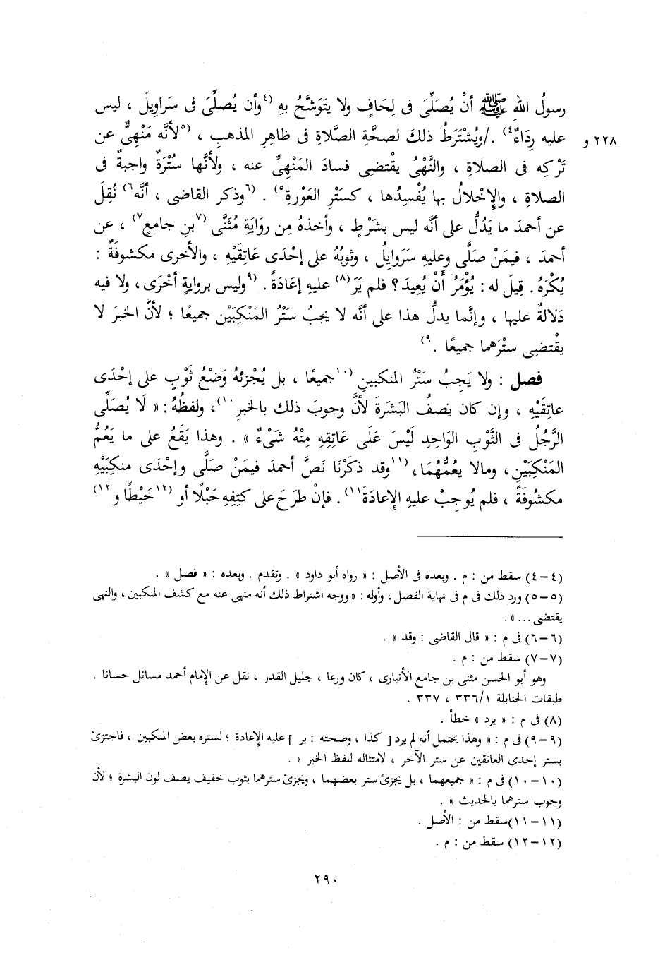 (٥) ورد ذلك في م في نهاية الفصل، وأوله: "ووجه اشتراط ذلك أنه منهى عنه مع كشف المنكبين، والنهى يقتضى. . .".