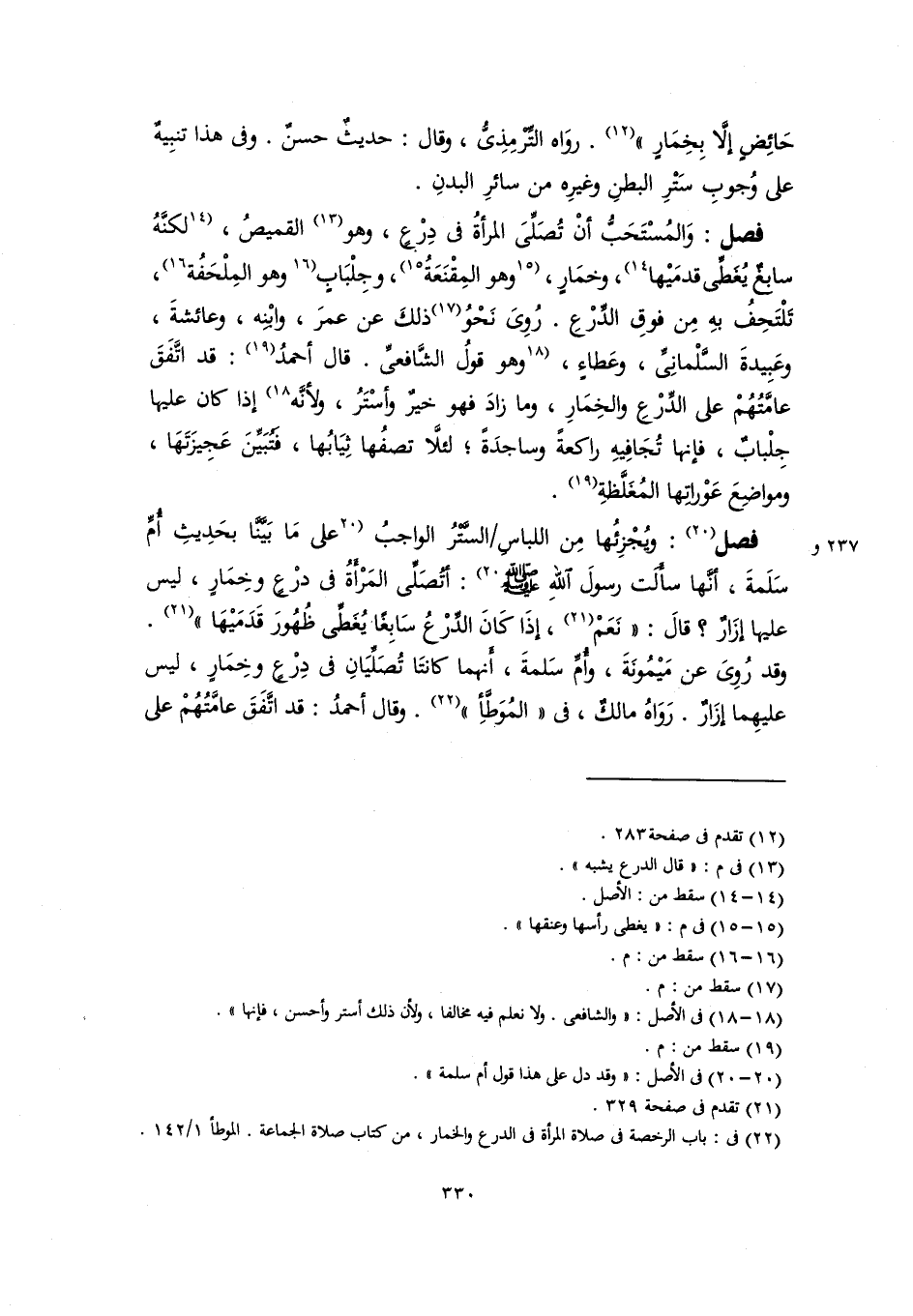 (٢٢) في: باب الرخصة في صلاة المرأة في الدرع والخمار، من كتاب صلاة الجماعة. الموطأ ١/ ١٤٢.