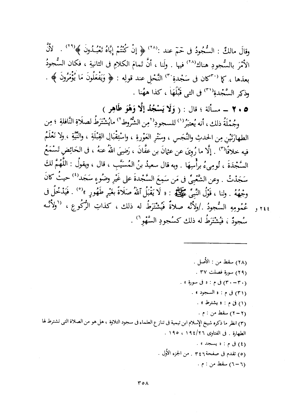 (٣) انظر ما ذكره شيخ الإِسلام ابن تيمية في تنازع العلماء في سجود التلاوة، هل هو من الصلاة التي تشترط لها الطهارة. في الفتاوى ٢٦/ ١٩٤، ١٩٥.