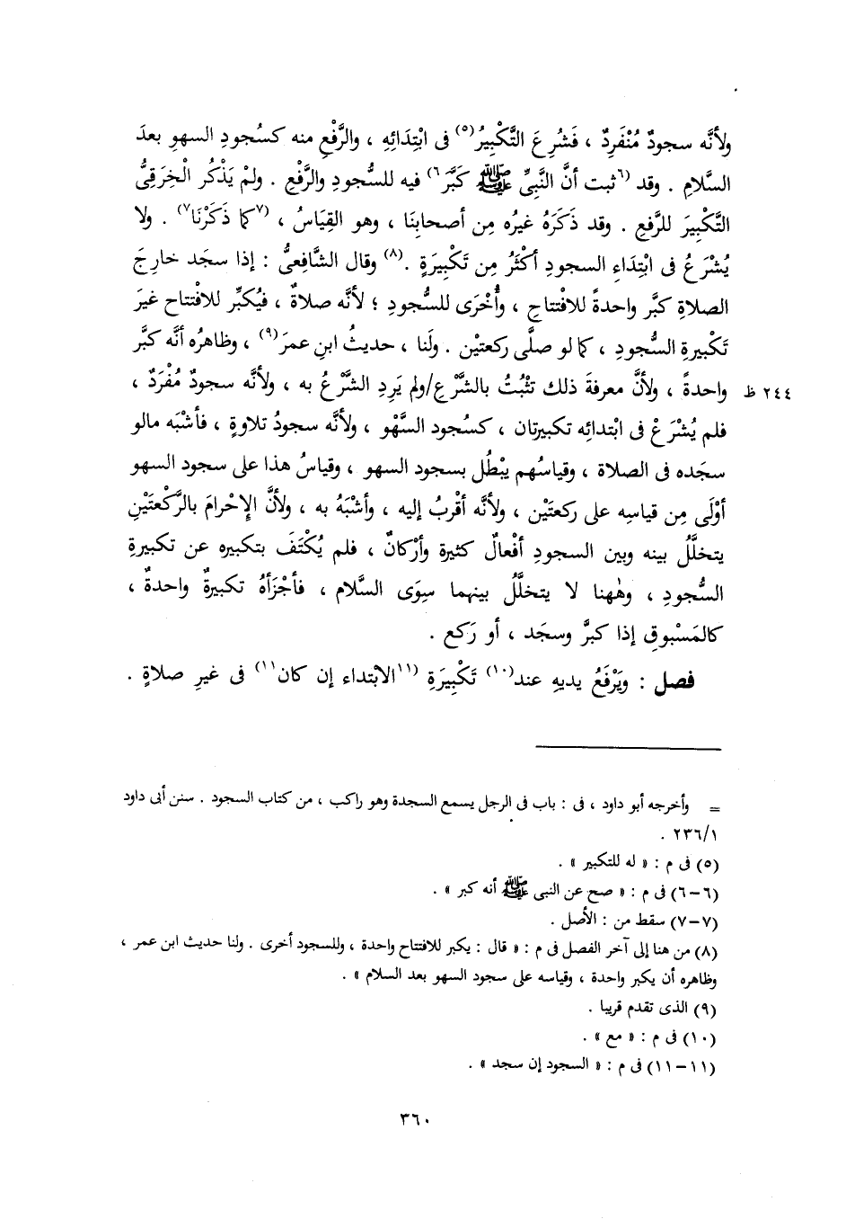 (٨) من هنا إلى آخر الفصل في م: "قال: يكبر للافتتاح واحدة، وللسجود أخرى. ولنا حديث ابن عمر، وظاهره أن يكبر واحدة، وقياسه على سجود السهو بعد السلام".