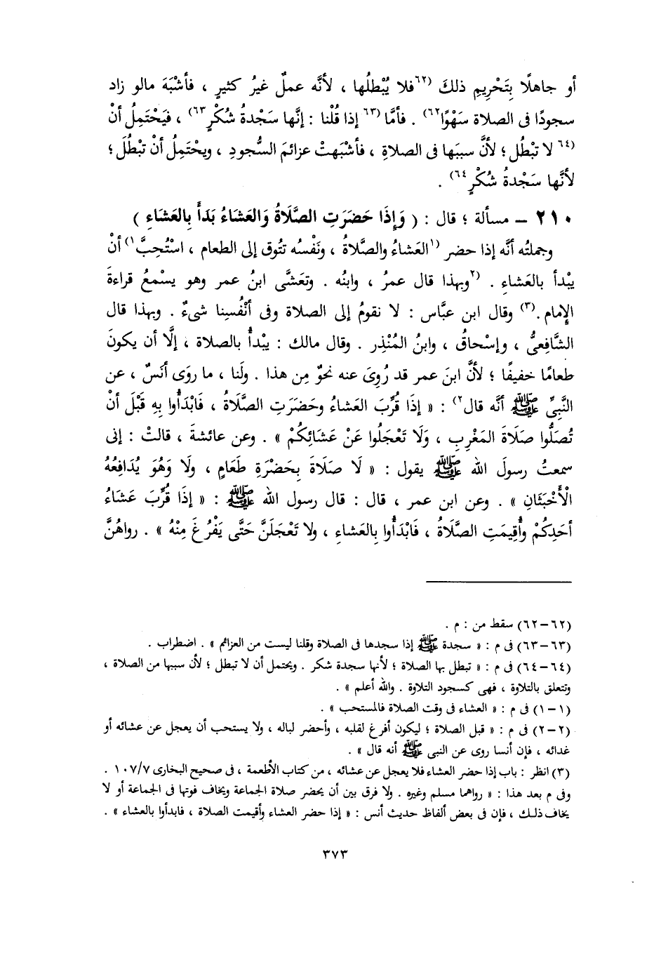 ٢١٠ - مسألة؛ قال: (وَإِذَا حَضَرَتِ الصَّلَاةُ وَالعَشَاءُ بَدَأَ بِالعَشَاءِ)