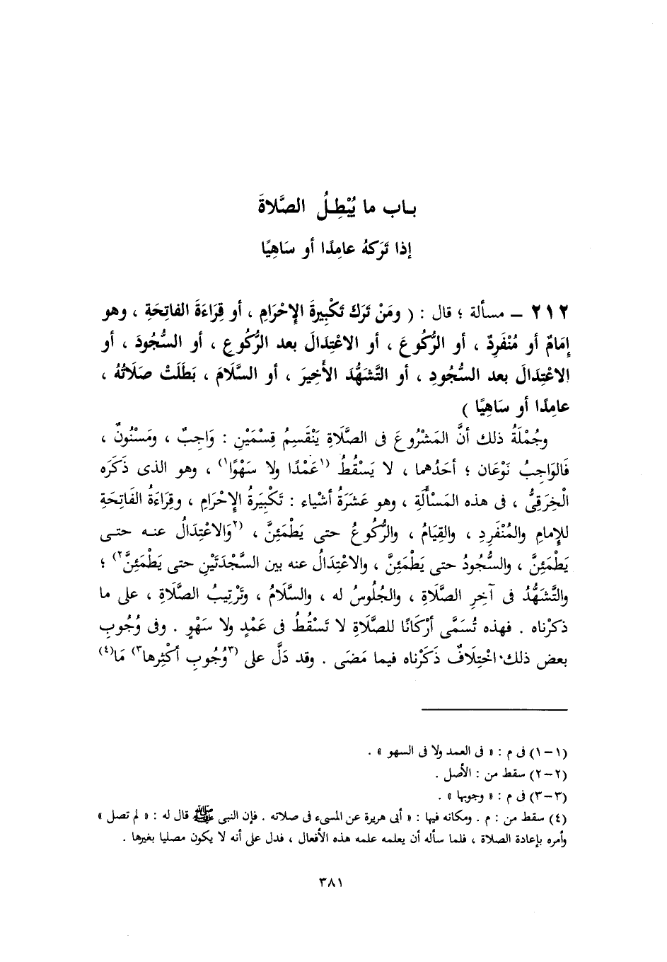 باب ما يُبْطِلُ الصَّلاةَ إذا تَرَكهُ عامِدًا أو سَاهِيًا