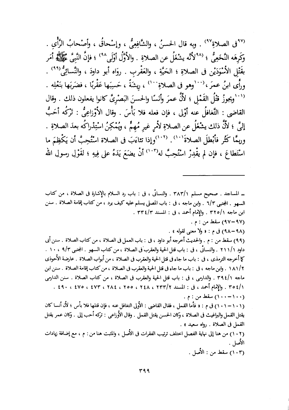 (٩٩) سقط من: م. والحديث أخرجه أبو داود، في: باب العمل في الصلاة، من كتاب الصلاة. سنن أبي داود ١/ ٢١١. والنسائي، في: باب قتل الحية والعقرب في الصلاة، من كتاب السهو. المجتبى ٣/ ٩، ١٠. كما أخرجه الترمذي، في: باب ما جاء في قتل الحية والعقرب في الصلاة، من أبواب الصلاة. عارضة الأحوذى ٢/ ١٨١. وابن ماجه، في: باب ما جاء في قتل الحية والعقرب في الصلاة، من كتاب إقامة الصلاة. سنن ابن ماجه ١/ ٣٩٤. والدارمى، في: باب قتل الحية والعقرب في الصلاة، من كتاب الصلاة. سنن الدارمي ١/ ٣٥٤. والإمام أحمد، في: المسند ٢/ ٢٣٣، ٢٤٨، ٢٥٥، ٢٨٤، ٤٧٣، ٤٧٥، ٤٩٠.