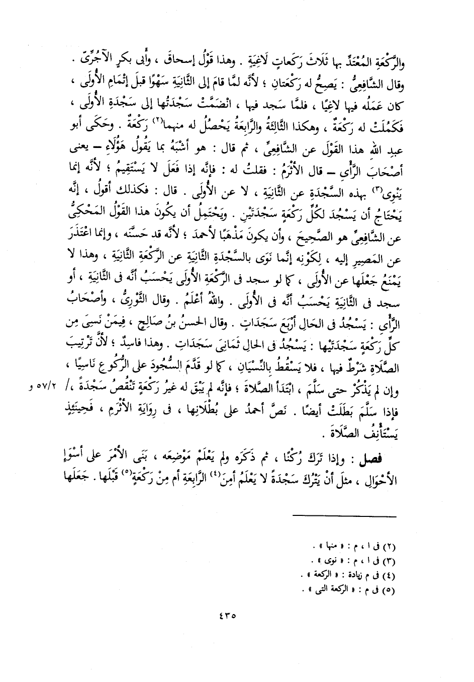 فصل: وإذا تَرَكَ رُكْنًا، ثم ذَكَرَه ولم يَعْلَمْ مَوْضِعَه، بَنَى الأمْرَ على أسْوَإِ الأحْوَالِ، مثلَ أنْ يَتْرُكَ سَجْدَةً لا يَعْلَمُ أمِنَ (٤) الرَّابِعَةِ أم مِنْ رَكْعَةٍ (٥) قَبْلَها. جَعَلَها