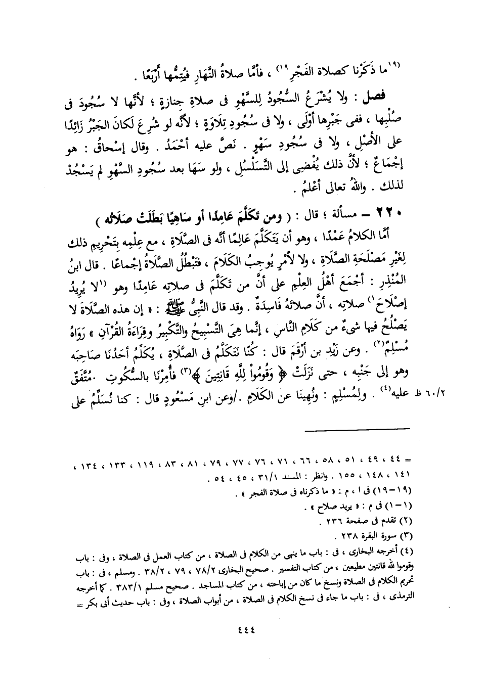 (٤) أخرجه البخاري، في: باب ما ينهى من الكلام في الصلاة، من كتاب العمل في الصلاة، وفى: باب وقوموا للَّه قانتين مطيعين، من كتاب التفسير. صحيح البخاري ٢/ ٧٨، ٧٩، ٢/ ٣٨. ومسلم، في: باب تحريم الكلام في الصلاة ونسخ ما كان من إباحته، من كتاب المساجد. صحيح مسلم ١/ ٣٨٣. كما أخرجه الترمذي، في: باب ما جاء في نسخ الكلام في الصلاة، من أبواب الصلاة، وفى: باب حديث أبى بكر =