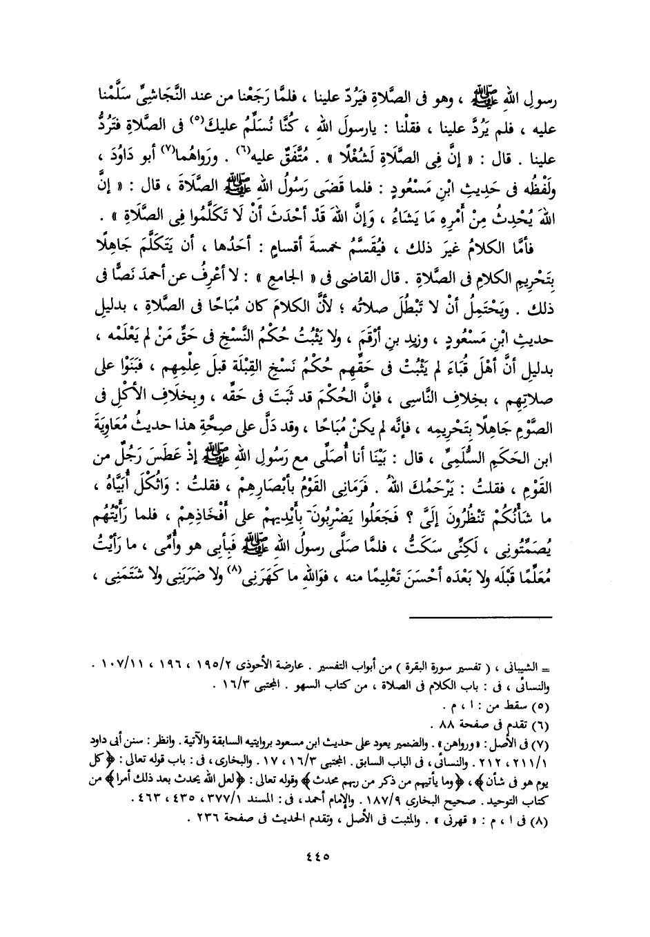 = الشيبانى، (تفسير سورة البقرة) من أبواب التفسير. عارضة الأحوذى ٢/ ١٩٥، ١٩٦، ١١/ ١٠٧. والنسائي، في: باب الكلام في الصلاة، من كتاب السهو. المجتبى ٣/ ١٦.