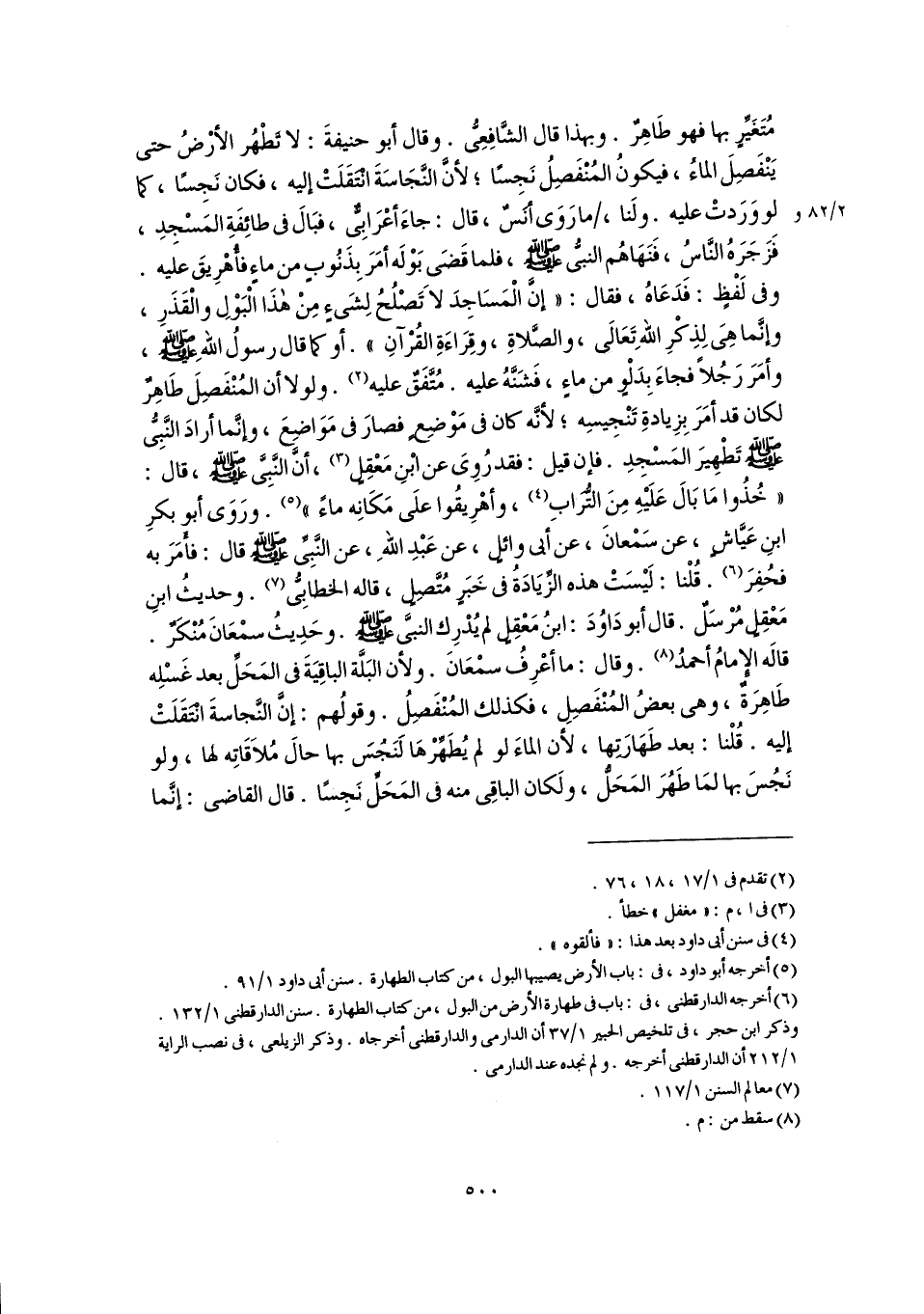 (٥) أخرجه أبو داود، في: باب الأرض يصيبها البول، من كتاب الطهارة. سنن أبي داود ١/ ٩١.