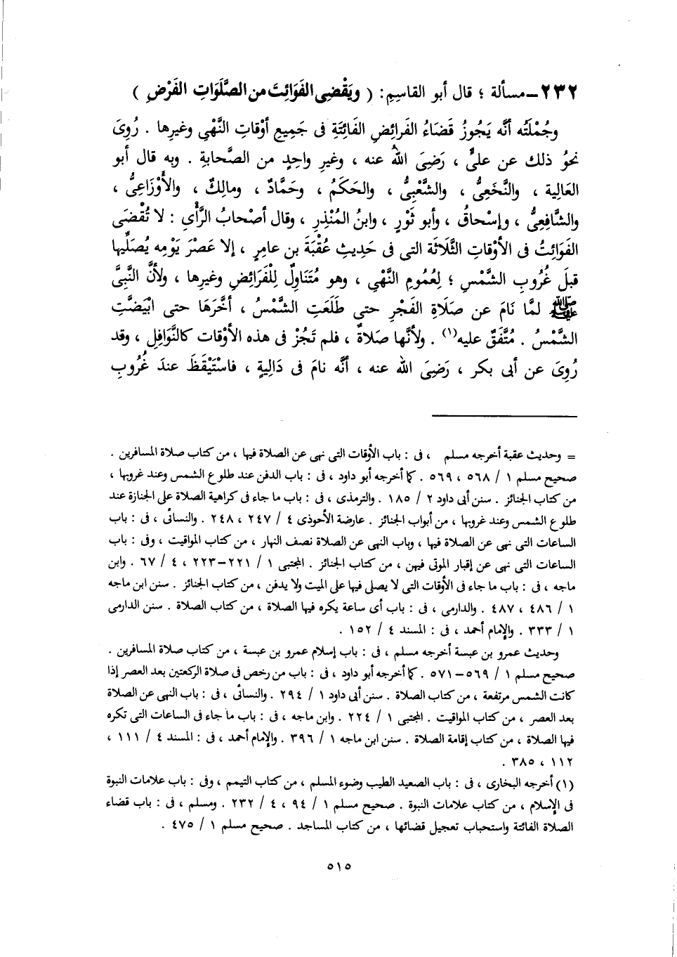 ٢٣٢ - مسألة؛ قال أبو القاسِمِ: (ويَقْضِى الفَوَائِتَ من الصَّلَوَاتِ الفَرْضِ)